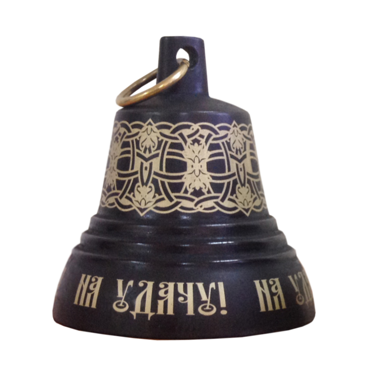 Валдайский сувенирный колокольчик с лазерной гравировкой. На колокольчике надпись "На счастье" или "На удачу".