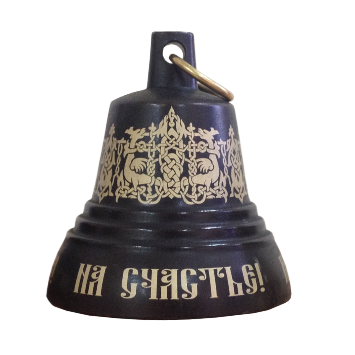 Валдайский сувенирный колокольчик с лазерной гравировкой. На колокольчике надпись "На счастье" или "На удачу".