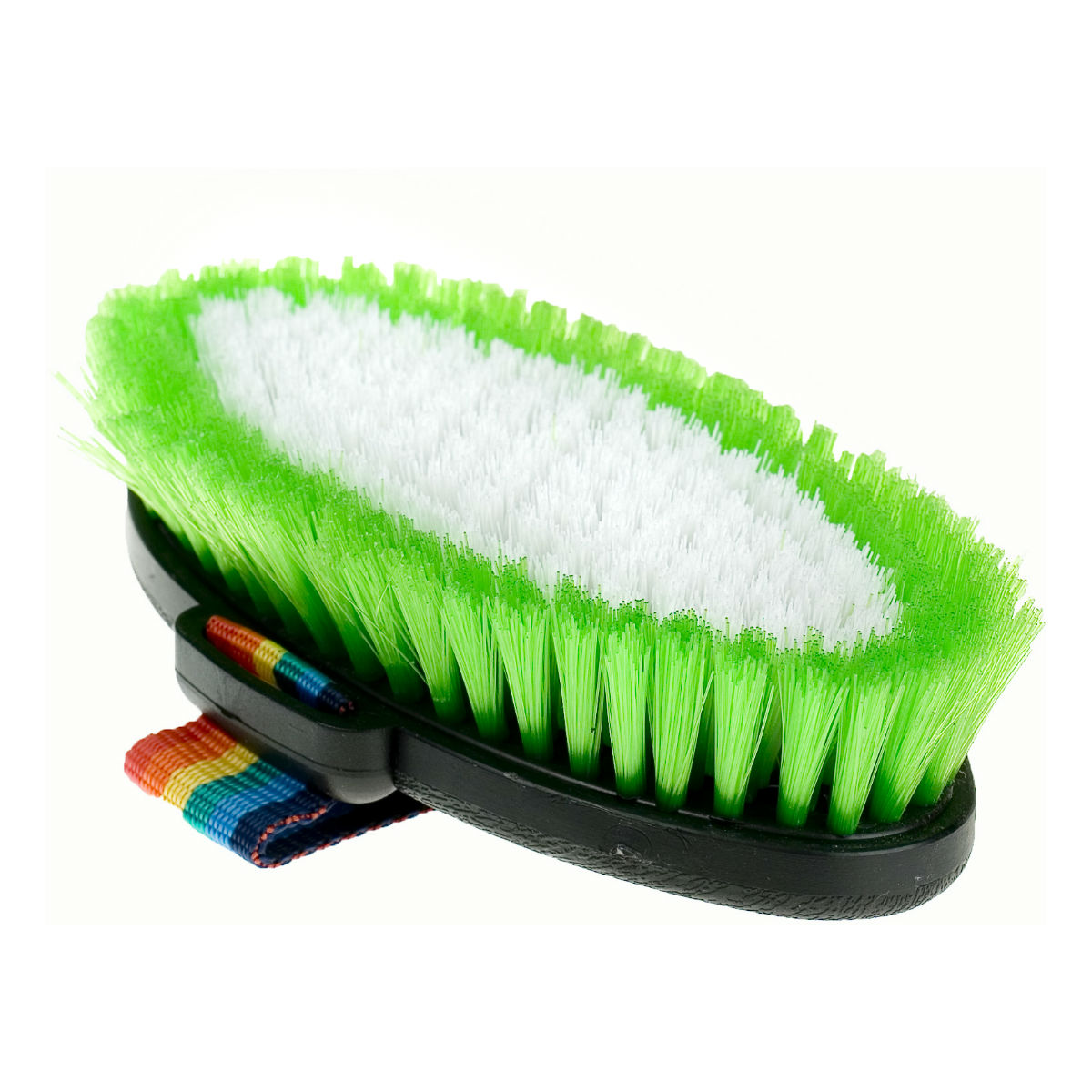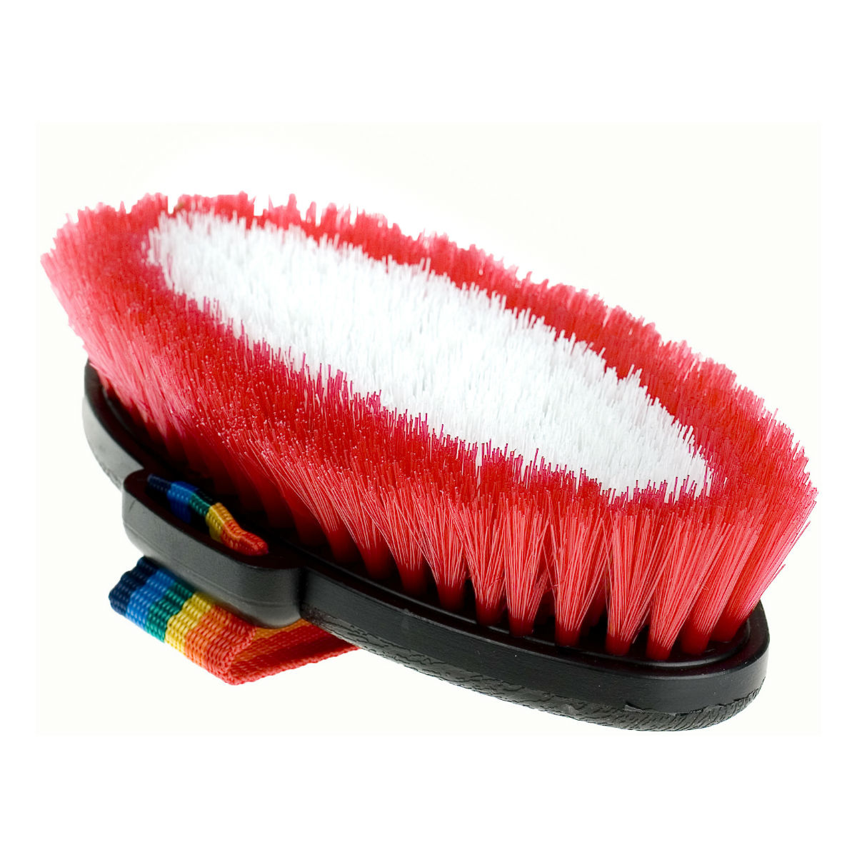 Мягкая щетка (brush) с искусственной щетиной на пластиковой основе. Удобный радужный ремешок для фиксации руки сделает ежедневный уход за лошадью более приятным. Щетки с мягкой щетиной можно использовать также для всего корпуса лошади, они хорошо вытирают пыль с лошади и помогают навести блеск. Чистка лошади играет большую роль в поддержании кожи и шерсти в здоровом состоянии.