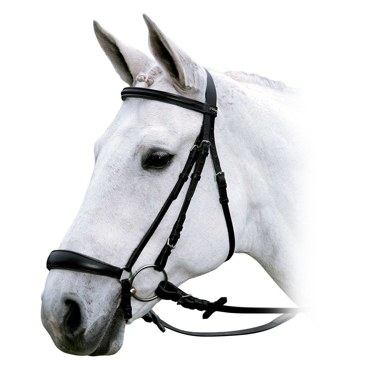 Трензельное головье из натуральной кожи (Leather Bridle) с чешским капсюлем. Подложка на капсюле и налобном ремне делает уздечку комфортной даже для чувствительных лошадей. В комплект входит тесьмяный повод с ограничителями и нашивками против скольжения. Трензель в комплект не входит.