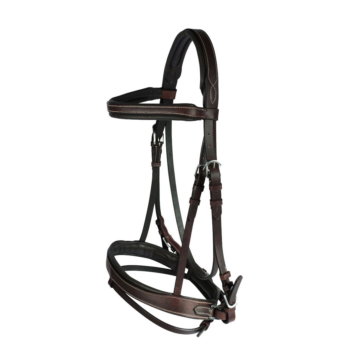 Трензельное оголовье (Leather Bridle) из высококачественной кожи с самозатягивающимся капсюлем. Капсюль, налобный и затылочный ремени на мягкой подложке, что обеспечит максимальный комфорт вашей лошади. Затылочный ремень анатомической формы. В комплект входит тесьмяный повод с ограничителями и нашивками против скольжения. Фурнитура серебристого цвета.