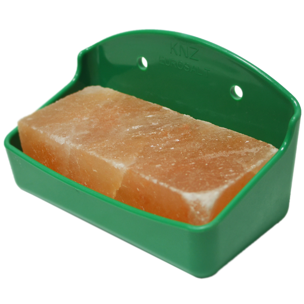 Наш блок соли 2,2 кг имеет габариты адаптированные для пластиковых подставок в денник, в стойло и на выпасе.