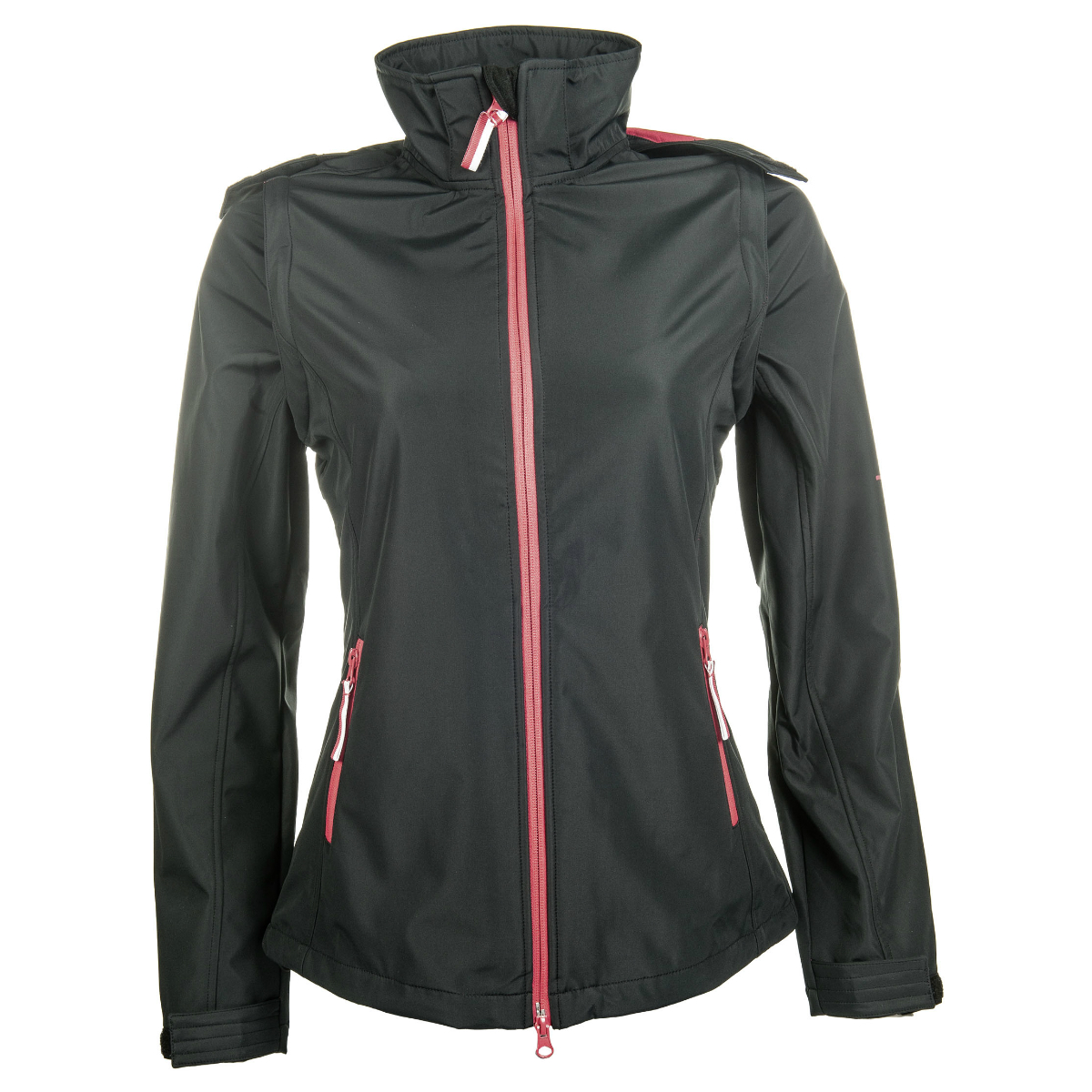 Стильная женская куртка (Jacket) из водооталкивающей и непродуваемой ткани-софтшелл. Воротник-стойка защищает шею в прохладную погоду. Куртка застегивается на молнию с двумя бегунками. Капюшон и рукава отстегиваются. Подкладка и молния контрастного цвета. Два боковых кармана на молнии.