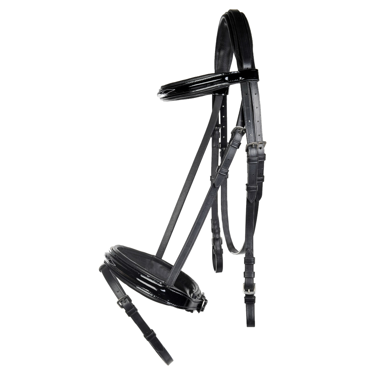 Трензельное головье из натуральной кожи (Leather Bridle). Затылочный ремень, налобник и капсюль на мягкой подложке, что обеспечивает максимальный комфорт вашей лошади. Налобный ремень и капсюль выполнены из лаковой кожи. Оголовье украшено декоративной отстрочкой контрастного цвета. В комплект входит тесьмяный повод с ограничителями и нашивками против скольжения.