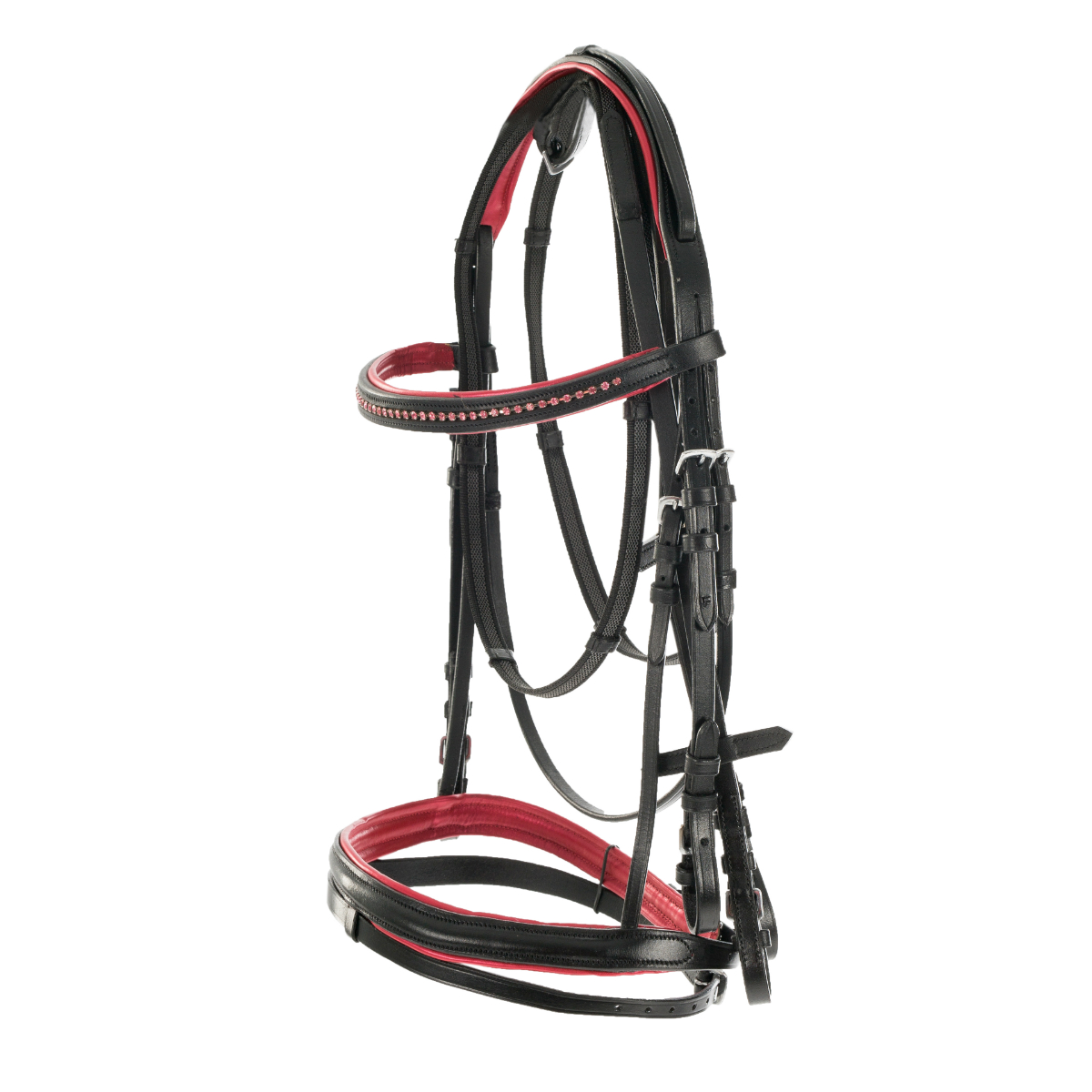 Налобный ремнь украшен стразами.