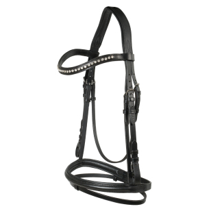 Уздечку украшает стильный изогнутый налобник с крупными стразами.