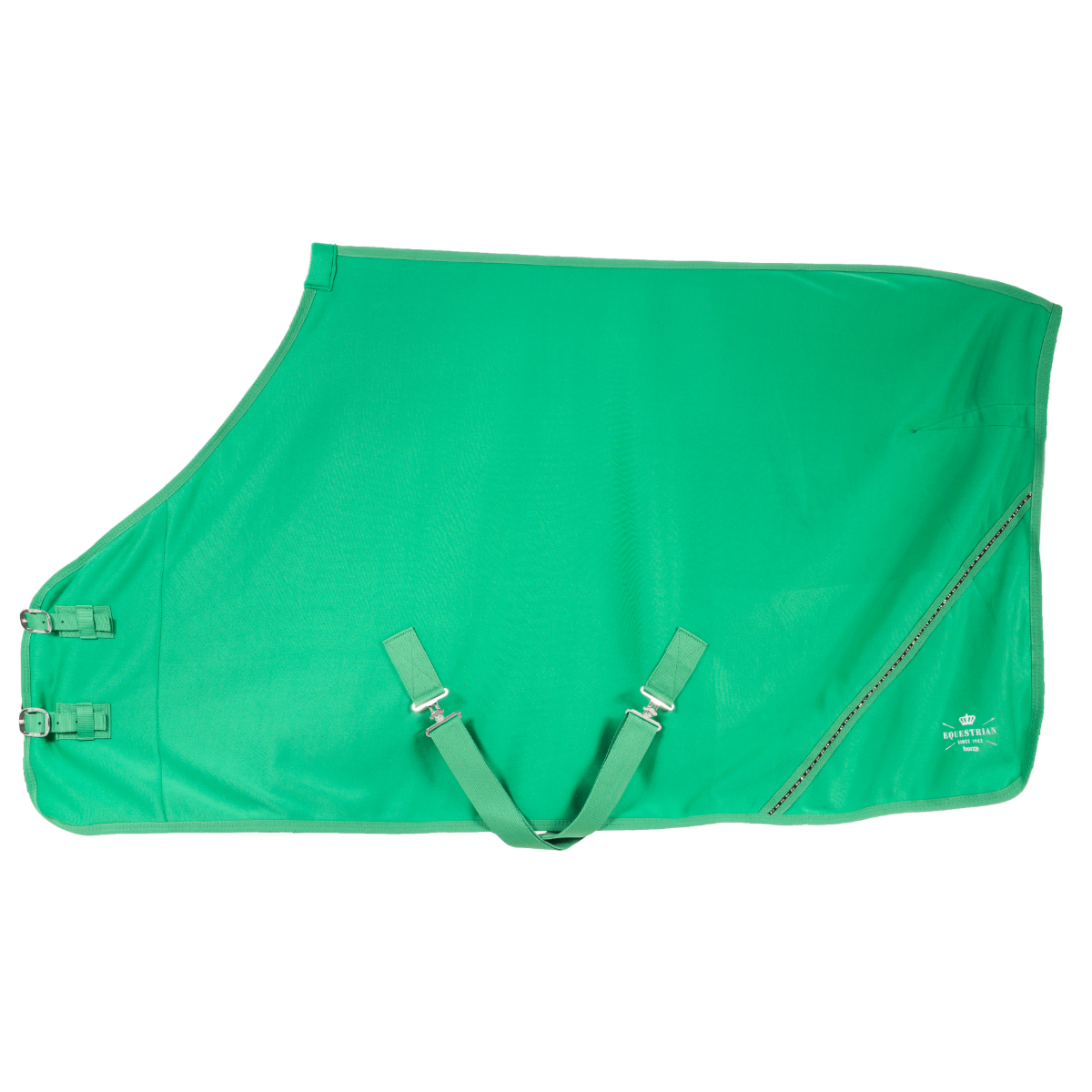 Попона снабжена подбрюшными ремнями и застежками на груди.
