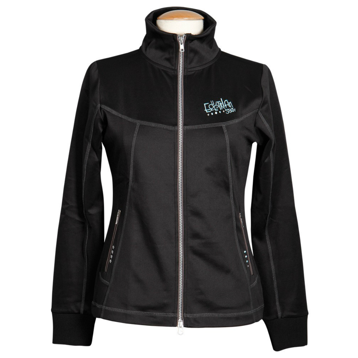 Легкая и удобная женская толстовка (Women's Sweatshirt). Высокий воротник, защищающий шею в прохладную погоду, молния контрастного цвета с двумя бегунками, два кармана на молниях по бокам. Толстовка смотрится стильно благодаря вставке на спине и вышивке на груди. Выполнена из эластичной синтетической ткани.