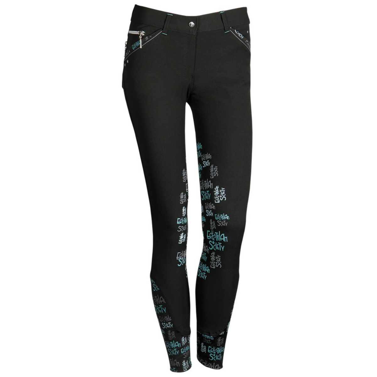 Бриджи с силиконовой коленной леей (Breeches with Silicone Knee Patch) в виде букв разных цветов. Силиконовая лея предполагает отстутствие лишних швов в зоне колен и обеспечивает наибольшую фиксацию в седле. Материал комфортный для тела, "дышащий", эластичный. На бриджах есть два передних набедренных кармана, декоративная молния над правым карманом. Сзади два накладных кармана и имитация карманов на молниях. Спереди и сзади бриджи украшены вышивкой. В области щиколотки эластичная вставка с принтом.