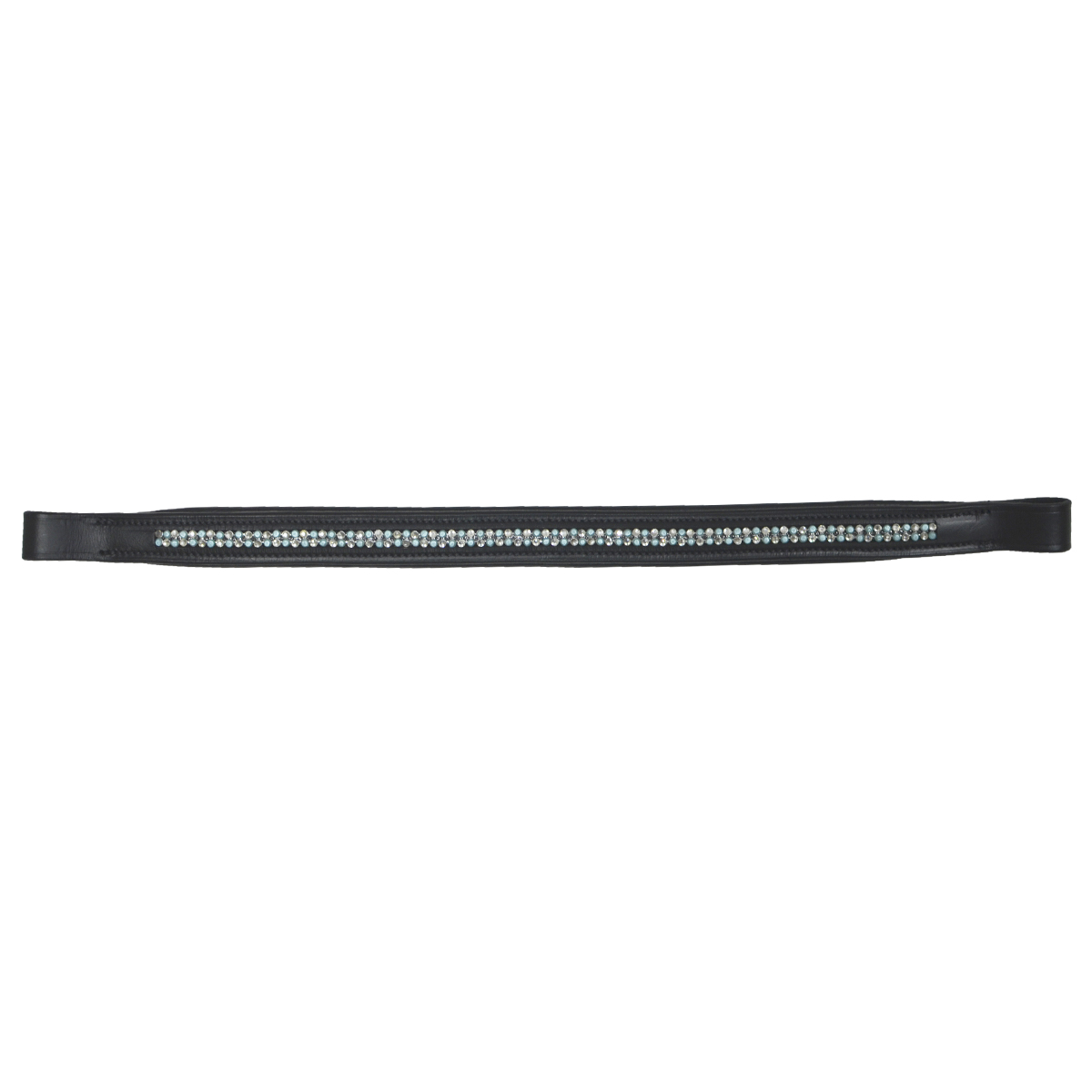 Элегантный налобный ремень из натуральной кожи. Налобник украшен маленькими камнями голубого цвета и стразами белого цвета.