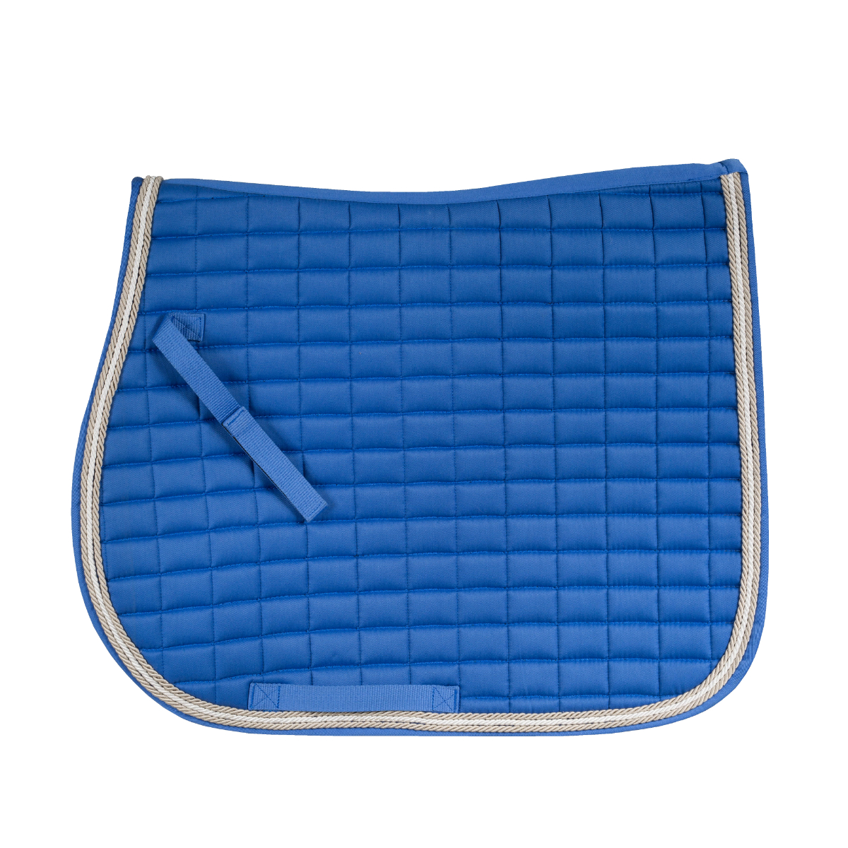 Универсальный вальтрап (All-Purpose Saddle Pad) анатомической формы. Наполнитель из поролона делает вальтрап объемным, что очень важно для амортизации. Красивая фигурная отстрочка в небольшую клетку, По краю украшен тройным декоративным шнуром. Хорошо держит форму и легок в уходе. Крепится на липучки.