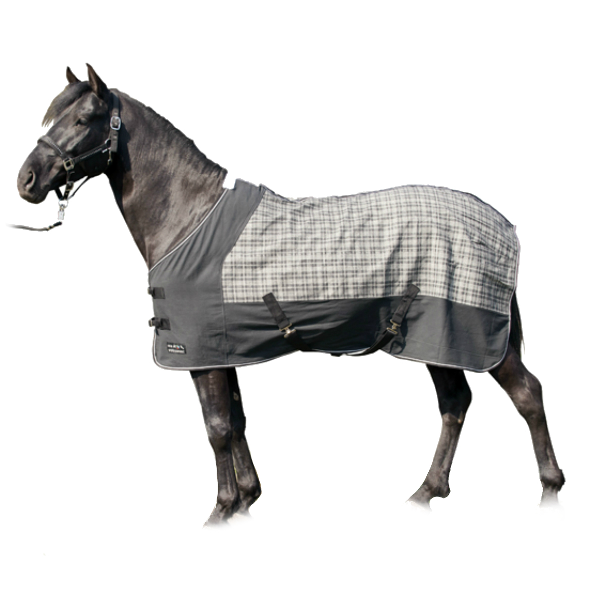 Демисезонная попона (CHANGEOVER RUG) из дышащего прочного материала. Попона, благодаря наличию различных ремней и резинок, плотно прилегает к телу и не соскальзывает. В области холки вшита вставка из искусственного меха, что предотвращает натирание. Попона украшена рисунком "в клетку" спокойных пастельных тонов. Подходит в качестве транспортировочной.