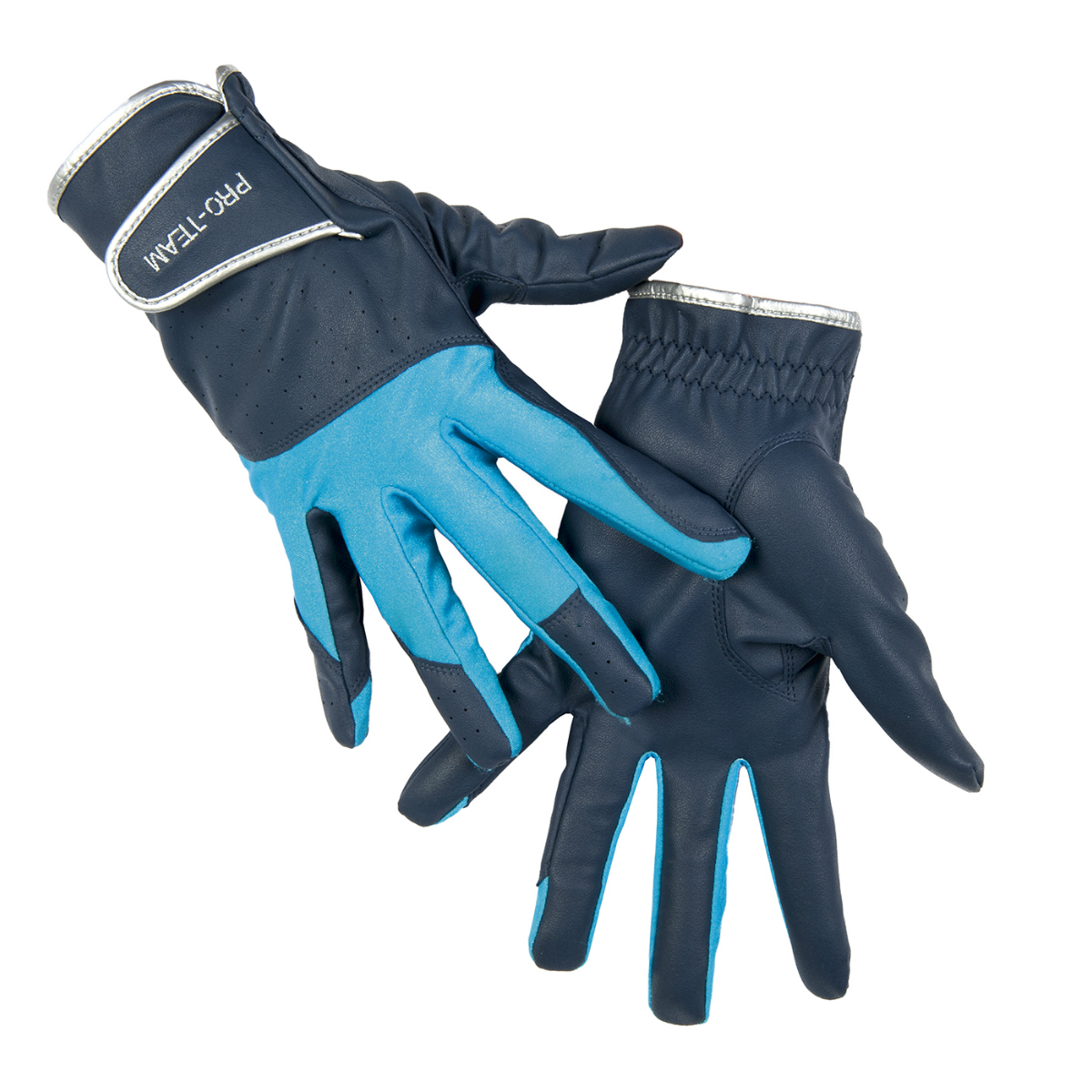 Перчатки для верховой езды (gloves for riding) из полиуретановой кожи. Контрастные вставки из лайкры предоставляют свободу движениям всадника. Перфорированная кожа пропускает воздух, что обеспечивает комфорт во время езды. Перчатки хорошо облегают руки не стесняя движения. Застегиваются на липучку в области запястья. Удобные и износостойкие.