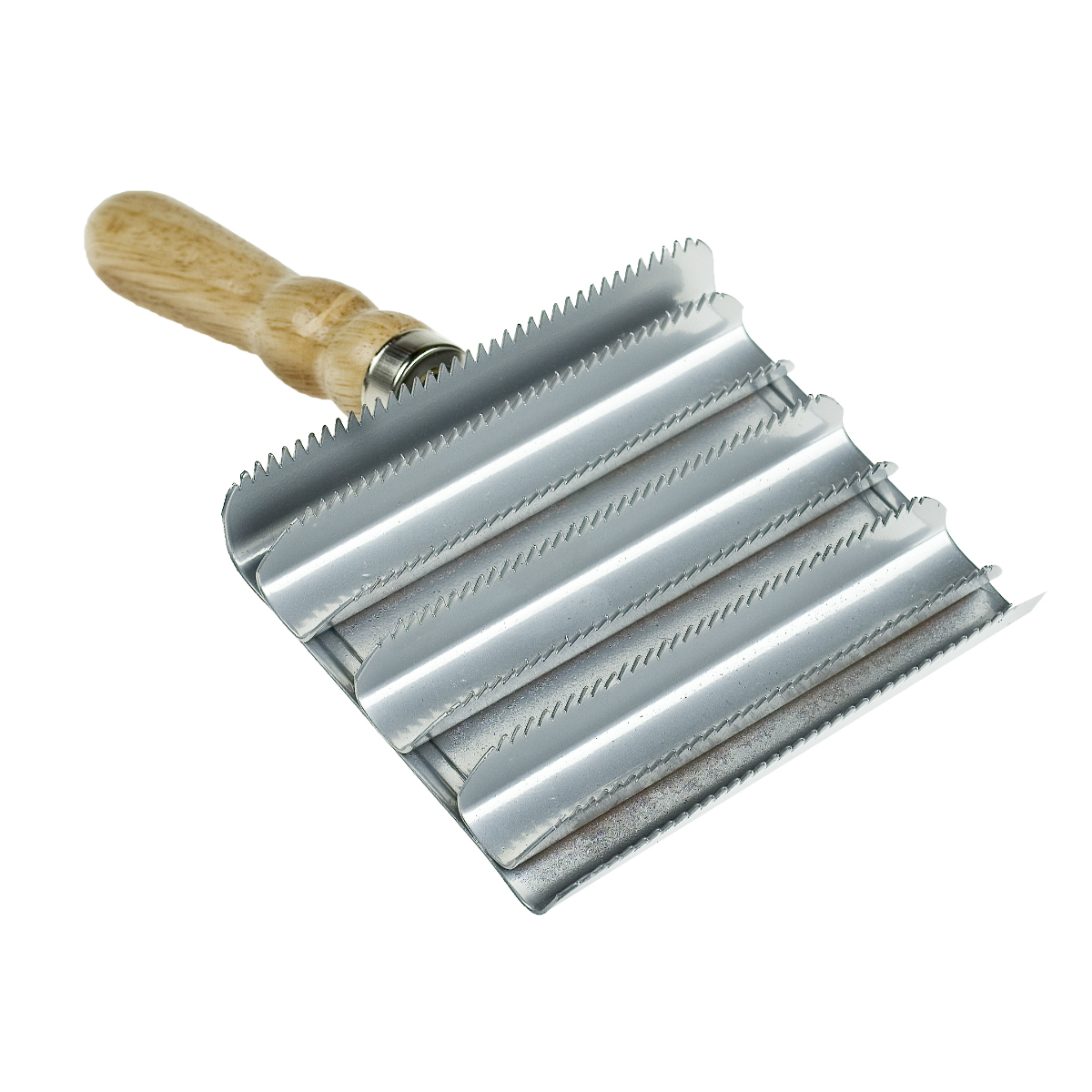 Металлическая скребница с деревянной ручкой. Эффективно удаляет грязь и выпавшие волосы.