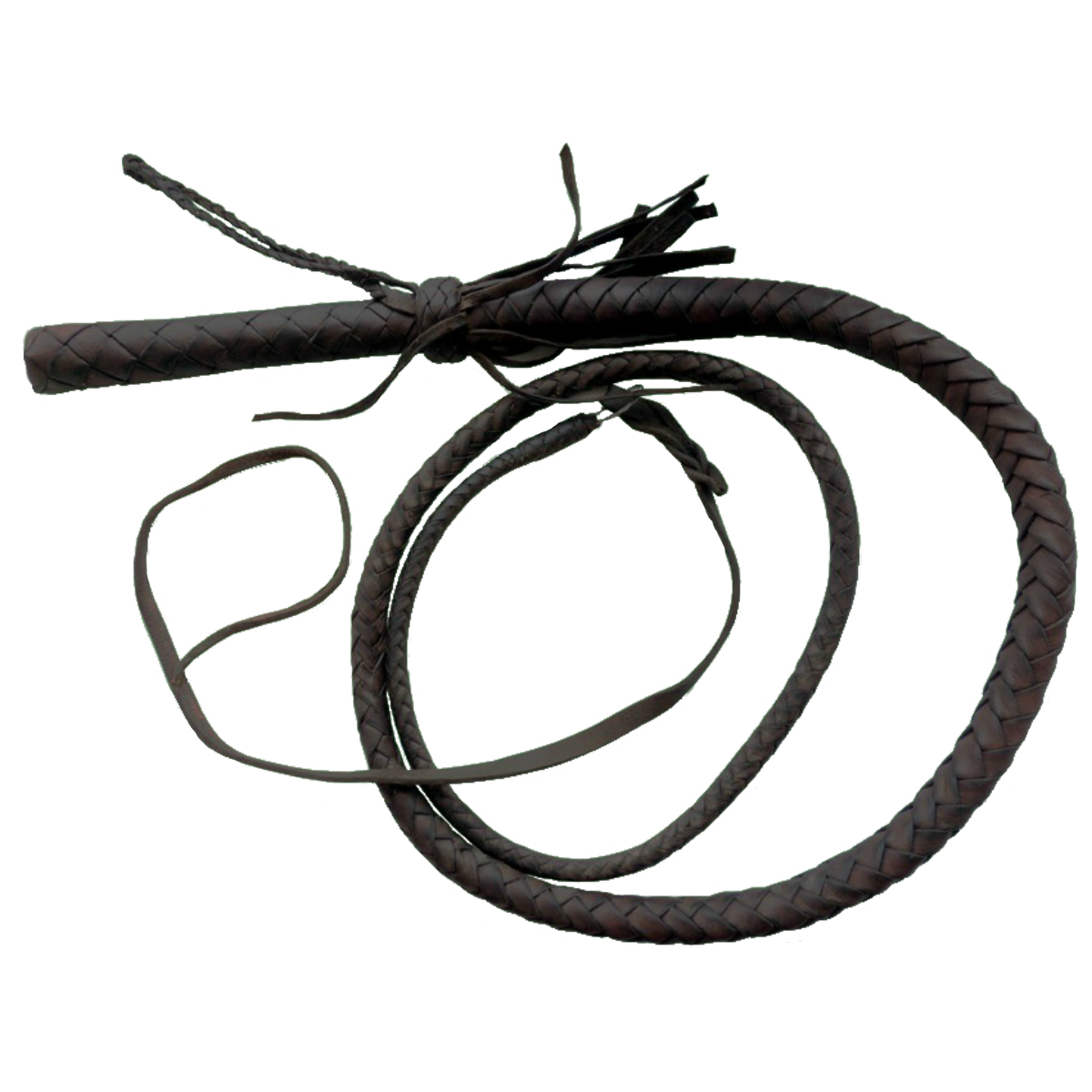 Арапник изготовлен из черной кожи. Сплетен из 6-ти "поясков" кожи. Основой для хлыста служит стальной тросик сечением 2-3 мм. Длина рукояти 15 см. На рукояти закреплен плетеный кожаный темляк. Диаметр рукояти, примерно 30 мм. Длина арапника 240 см (-5 см). Вес изделия 580 грамм. Арапник изготовлен и покрашен вручную.