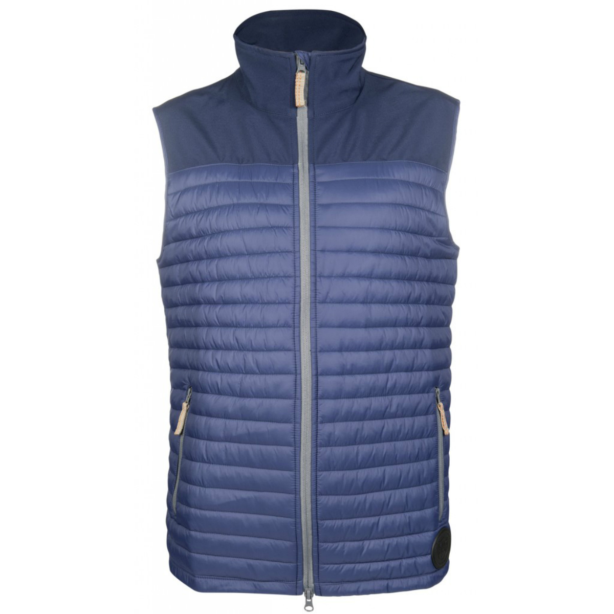 Мужской жилет (Riding Vest) для верховой езды из очень воздухопроницаемой, но при этом непродуваемой ткани. Ткань водо- и грязеотталкивающая. Высокий воротник защищает от ветра. Застегивается на молнию с двумя бегунками. 2 наружных кармана на молнии.