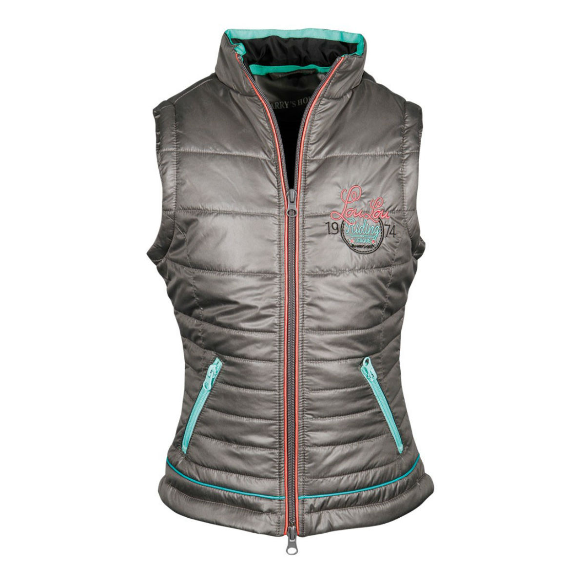 Детский жилет для верховой езды (Riding Vest) из дышащей и при этом непродуваемой ткани. Верхняя ткань легка в уходе благодаря грязеотталкивающей поверхности. Воротник-стойка защищает шею от ветра. Приталенный крой подчеркивает силуэт. Жилет застегивается на молнию с двумя бегунками. 2 наружных кармана на молнии. Жилет украшен контрастной вышивкой и декоративными акцентами бирюзового и персикового цвета. Немного удлинён сзади.