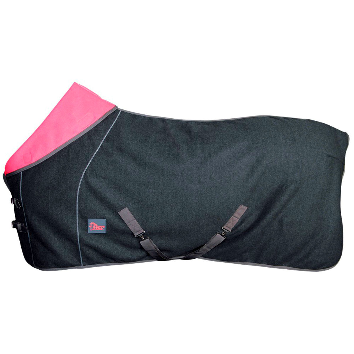 Попона застегивается на ремешки с металлическими пряжками спереди. Имеются подбрюшные ремни.