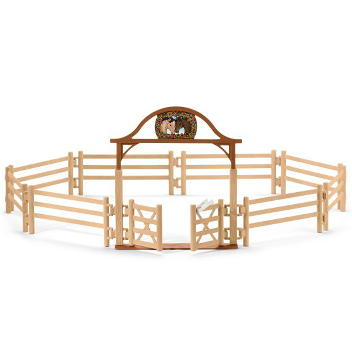 Всем владельцам лошадок Schleich понравится стильный загон, в который можно помещать любимые фигурки. Загон легко разбирается, входные ворота легко открываются и закрываются. Комплект состоит из 8 частей забора, входных ворот и наклейки на ворота.