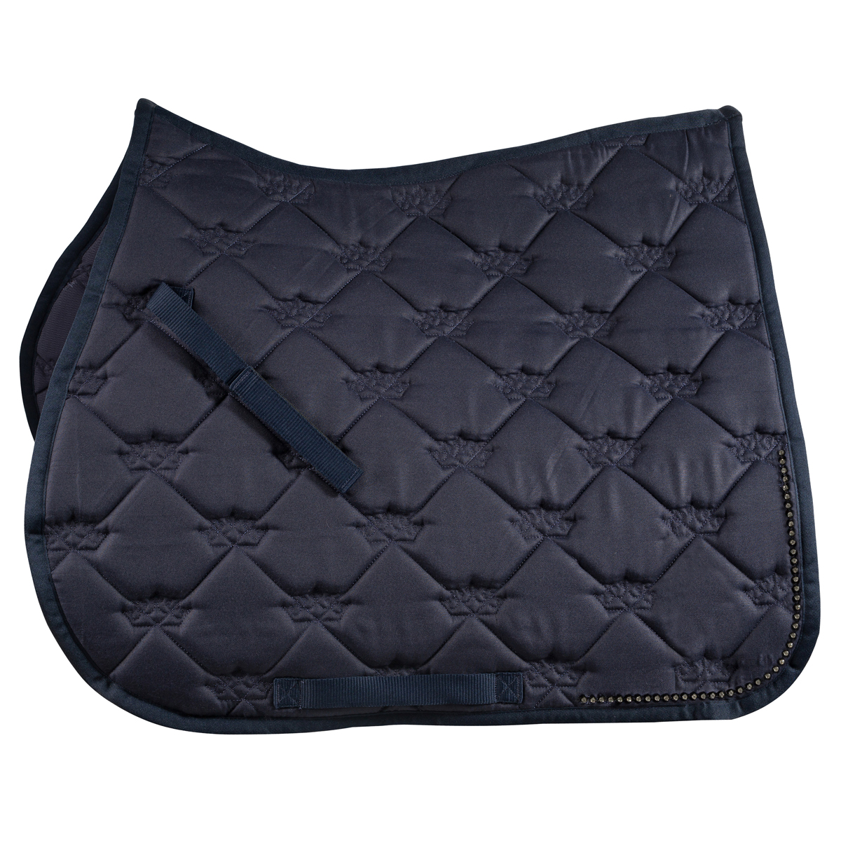 Универсальный вальтрап (All-Purpose Saddle Pad) с вышивкой из небольших корон. Дышащая сетчатая подкладка гарантирует превосходное поглощение влаги. Наполнитель из синтепона делает вальтрап объемным, что очень важно для амортизации. Нижний задний угол украшен стразами. Вальтрап хорошо держит форму и легок в уходе. Крепится на липучки.