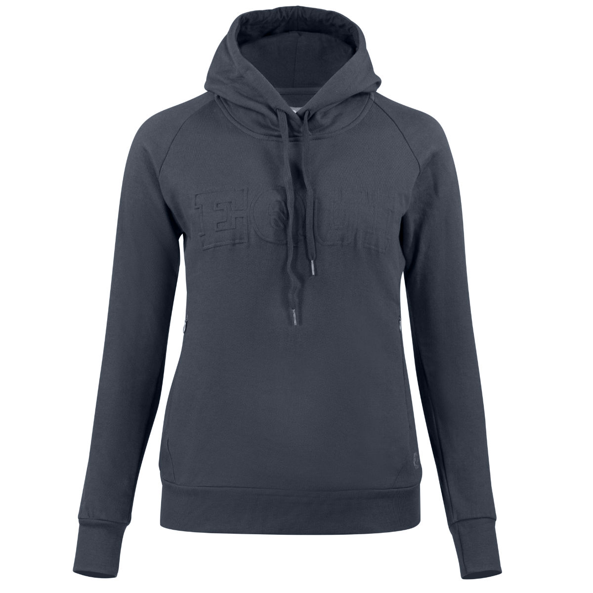 Мягкая женская толстовка (Women's Hoodie) на флисовом подкладе. Капюшон завязывается на шнурок. Толстовка приталенного кроя отлично сидит по фигуре. По бокам два потайных кармана на молнии. Толстовку украшена рельефным тиснением с надписью "EQUI".