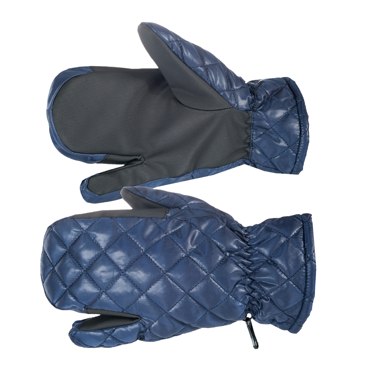 Стёганые варежки на флисе (Winter Gloves) обеспечивают защиту от низких температур в прохладное время года. Ветронепродуваемый и водооталкивающий материал защитит руки от замерзания. Удлиненная запястная часть на резинке предотвратит поддувание холодного зимнего воздуха в рукава. Сочетание перчаток и варежек обеспечит больше комфорта и тепла вашим рукам. Теплые зимние варежки для верховой езды с тремя пальцами позволят вам уверенно держать повод. Большой палец и мизинец остаются свободными для контроля над поводом, а другие пальцы держатся вместе и лучше сохраняют тепло. Благодаря полиуретановому материалу на ладони улучшено сцепление с поводом.