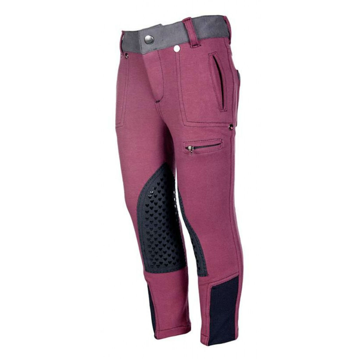Детские бриджи для верховой езды с силиконовой коленной леей (Reithose -Bonnie- Kniebesatz). Материал комфортный для тела, "дышащий", эластичный. Бриджи выглядят стильно благодаря сочетанию разных цветов. Два передних набедренных кармана и два накладных кармана сзади. На поясе имеются петли для ремня. Лея на бриджах украшена рисунком в виде "сердца". Бриджи регулируются по размеру на поясе.
