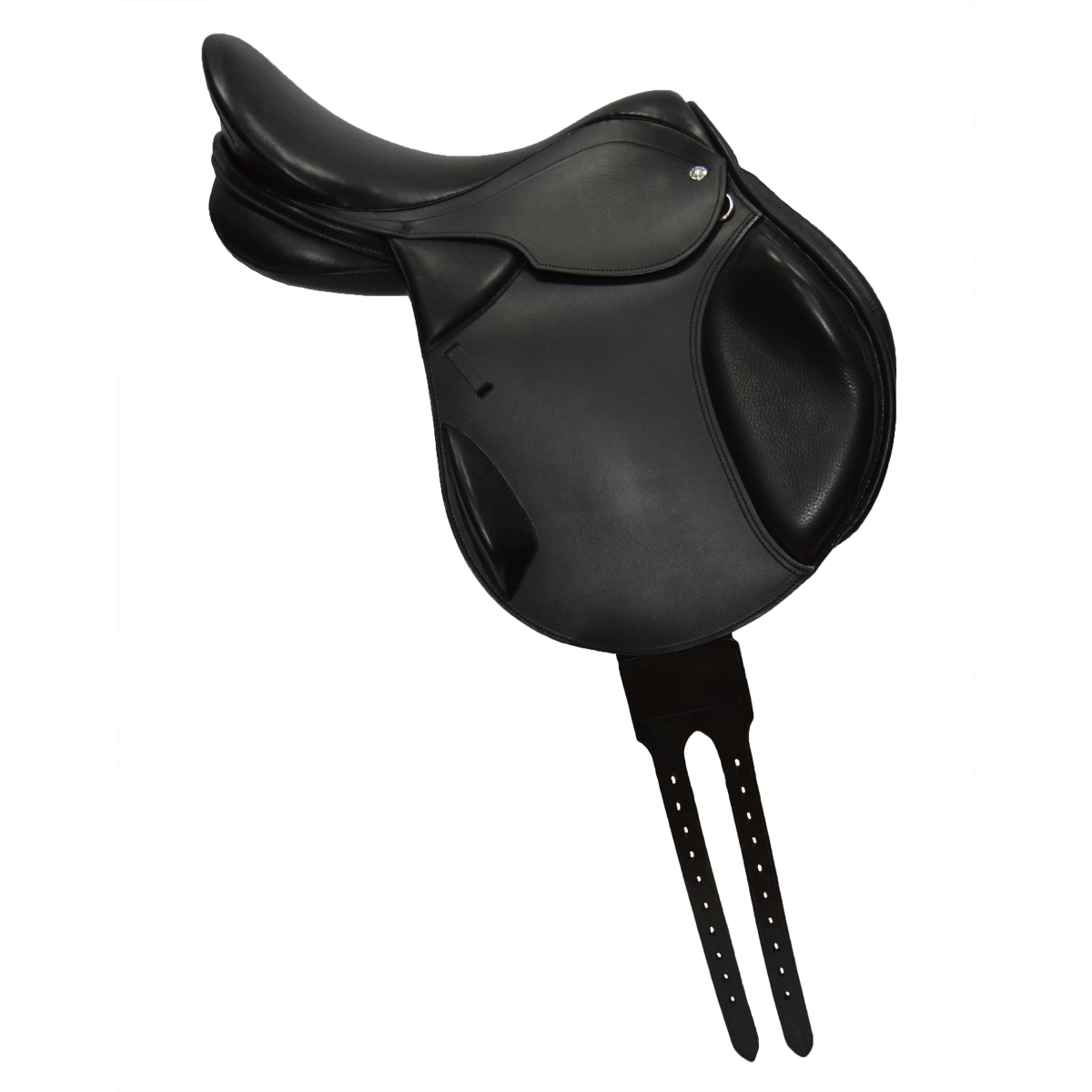 Модель седла с монокрылом, позволила поднять и увеличить передние упоры. Благодаря этому, устойчивость всадника после прыжка увеличена, а значит результаты могут быть улучшены. На этом седле ваше колено на прыжке останется плотно прижато к крылу, а нога не уйдет назад слишком сильно. Задний упор на седле вынесен непосредственно на крыло. Седло имеет деревянный каркас укрепленный металлом. Обратите внимание, что у седла длинные приструги.