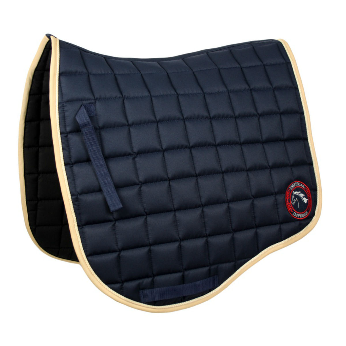 Вальтрап (Saddle Pad) анатомической формы с мягким наполнителем. Наполнитель из поролона 15мм и синтепона делает вальтрап объемным, что очень важно для амортизации. Подклад из хлопковой ткани идеально впитывает влагу. Отстрочка в небольшую клетку, По краю вальтрап украшен контрастным кантом и декоративным шнуром. Хорошо держит форму и легок в уходе. Крепится на липучки.