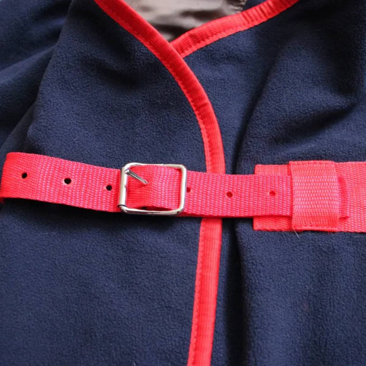Попона застегивается на ремешок с пряжкой.