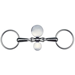 Трензель для лошадей, перекидывающих язык. Сделан из высококачественной нержавеющей стали, отполирован специальными методами, исключающими повреждения и дефекты. С двумя соединениями со звеном, на котором расположена плоская лопатка. Не позволяет лошади перекидывать язык. Рекомендуется использовать с подтянутым капсулем.