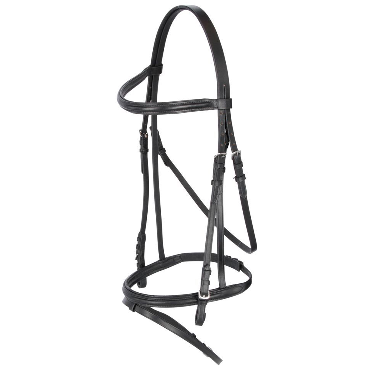 Крепкое оголовье из натуральной кожи (Leather Bridle). В комплект входит кожаный повод. Фурнитура серебристого цвета. Трензель в комплект не входит.
