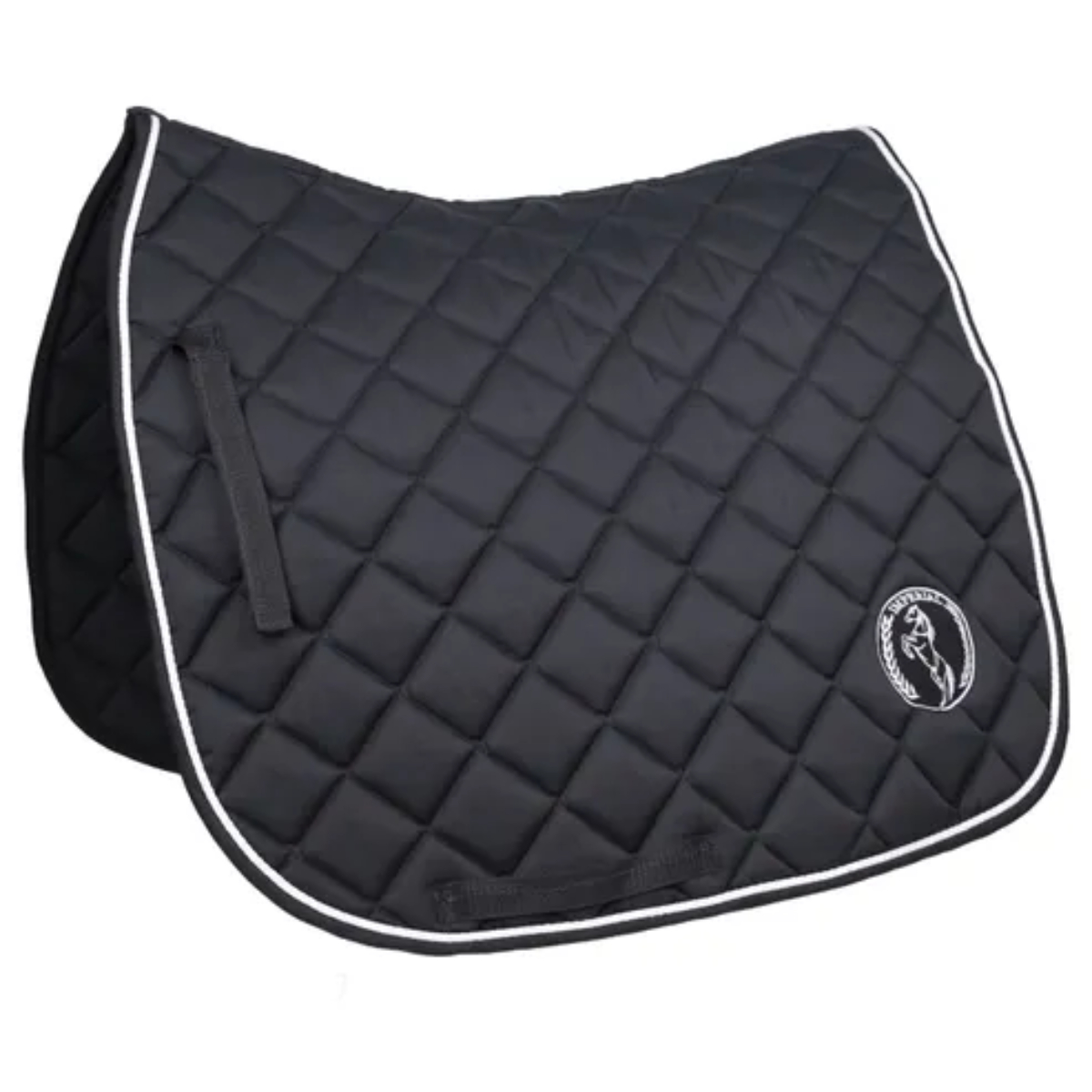 Выездковый вальтрап (Dressage Saddle Pad) анатомической формы. Наполнитель из поролона и синтепона делает вальтрап объемным, что очень важно для амортизации. Вальтрап украшают ромбовидная стежка и вышитая эмблема. Вальтрап хорошо держит форму и легок в уходе. Крепится на липучки.