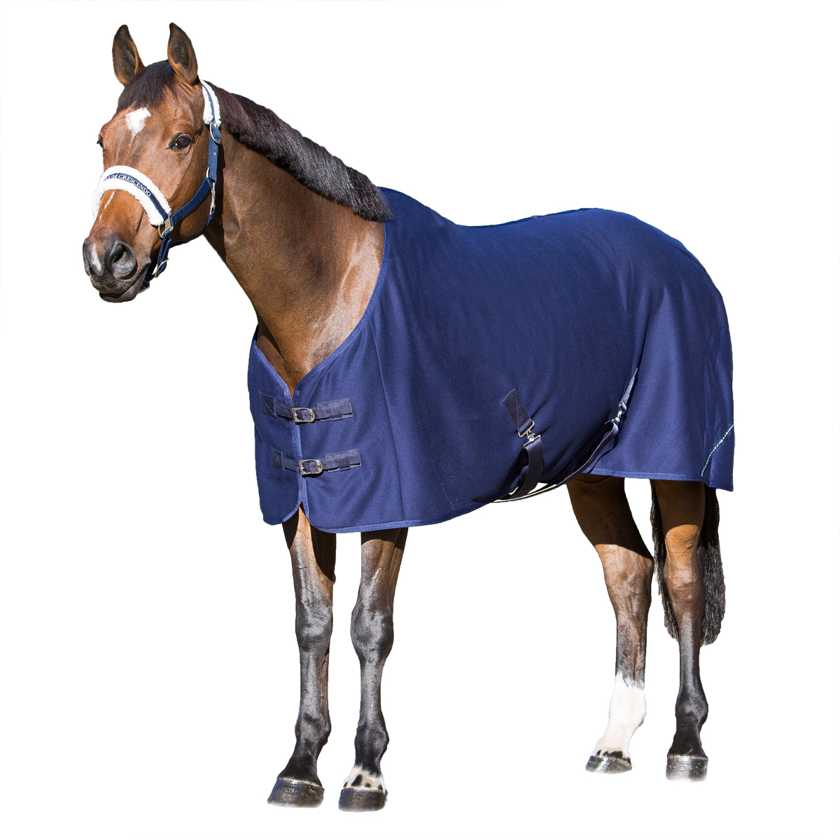 Легкая флисовая попона (Fleece Blanket) из мягкого нескатывающегося флиса может использоваться как сушильная или как легкая денниковая. На передней части попоны двойная застежка, также имеются подбрюшные ремни и подхвостный шнур, которые удерживают попону на теле лошади. Хромированные пряжки серебряного цвета. Украшена лентой со стразами.