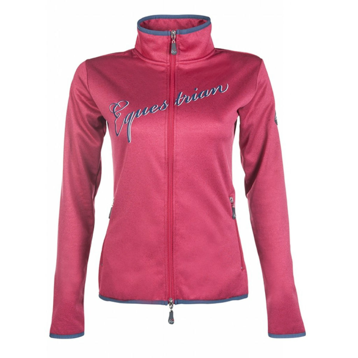 Легкая женская толстовка для верховой езды (Women's Fleece Jacket) на флисовом подкладе. Выполнена из эластичной синтетической ткани. Высокий воротник защищающий шею в прохладную погоду. Застегивается на молнию с двумя бегунками. Два кармана на молниях по бокам. Толстовка украшена аппликацией на груди.