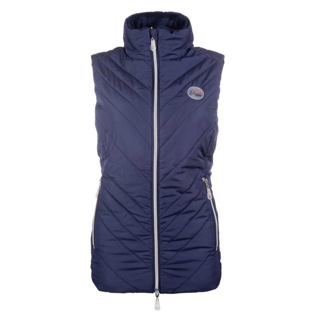 Жилет для верховой езды (Riding Vest) из непродуваемой ткани. Верхняя ткань легка в уходе благодаря грязеотталкивающей поверхности. Наполнитель и воротник-стойка делают жилет теплым для прохладной погоды, обеспечивая сохранение тепла. Воротник на флисовом подкладе. Жилет застегивается на молнию с двумя бегунками. Два наружных кармана на молнии. На груди логотип HKM.