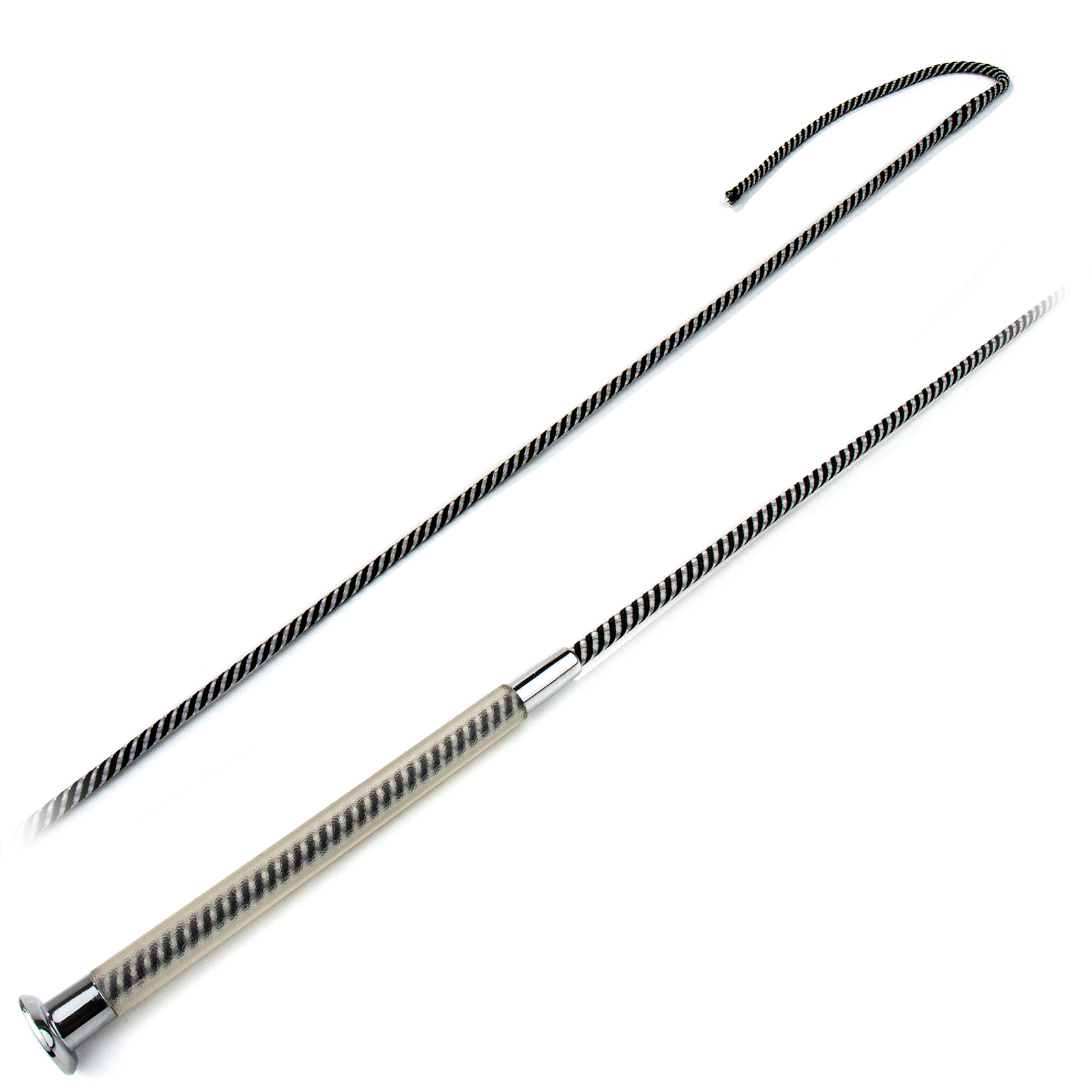 Красивый двухцветный хлыст (dressage whip) с прозрачной пластиковой ручкой. Оплетка - тесьмяный шнур.