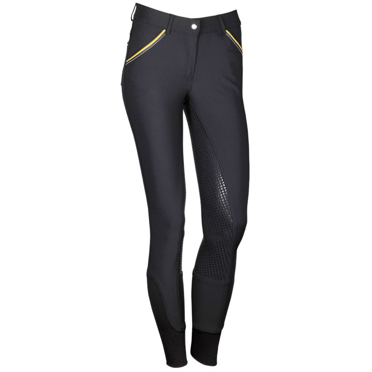 Женские бриджи с полной силиконовой леей (Riding Breeches with Silicone Patch). Силиконовая лея обеспечивает наибольшую фиксацию в седле. На поясе петли для ремня. Два передних кармана с контрастной окантовкой и два задних кармана, украшенных пайетками. Застёгиваются на молнию и брючный крючок. В области щиколотки имеются эластичные вставки для удобства одевания.