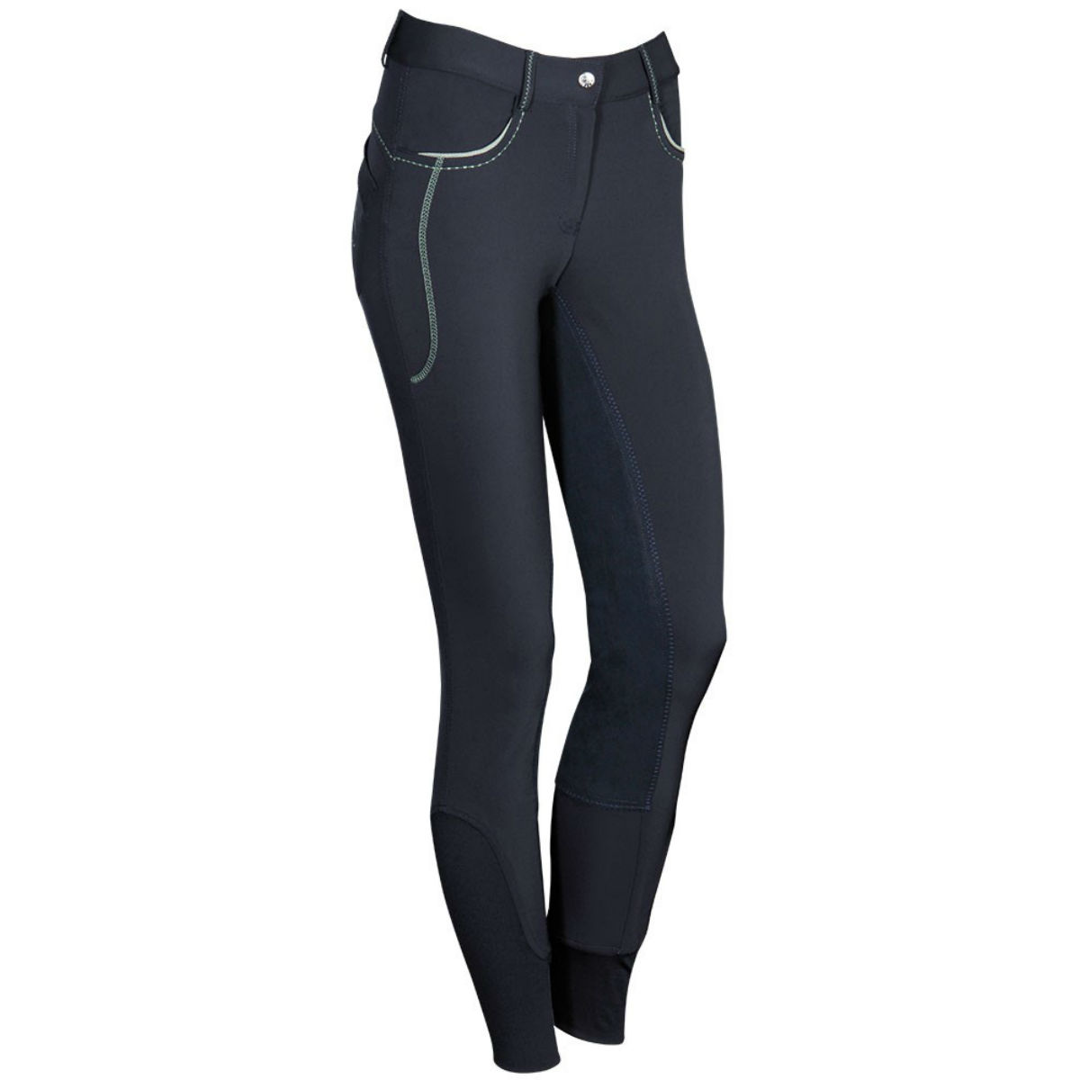 Женские бриджи с полной замшевой леей (Riding Breeches with Full Seat). Бриджи хорошо обтягивают фигуру. На поясе петли для ремня, два передних набедренных кармана и два кармана сзади. Застёгиваются на молнию и брючный крючок. Благодаря контрастной отстрочке, бриджи выглядят стильно. В области щиколотки имеются эластичные вставки для удобства одевания.