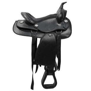 Седло Вестерн (Western Saddle) - прекрасный вариант для длительных прогулок. Его конструкция позволяет и всаднику, и лошади чувствовать себя комфортно в долгих поездках. Сиденье обтянуто искусственной замшей. Отделка полок снизу выполнена из искусственного меха, что предотвращает натирание в течение прогулок. В комплект входят традиционные приструги и стремена. Седло украшено металлическими розетками.