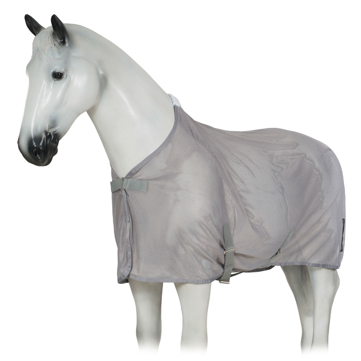 Летняя противомоскитная попона (Anti-Fly Rug) защищает туловище лошади от насекомых. Для предотвращения натирания шеи лошади, на холке имеется вставка из искусственного меха. Спереди застёгивается на липучку-велькро. Материал попоны мягкий, легкий и дышащий, легок в уходе.