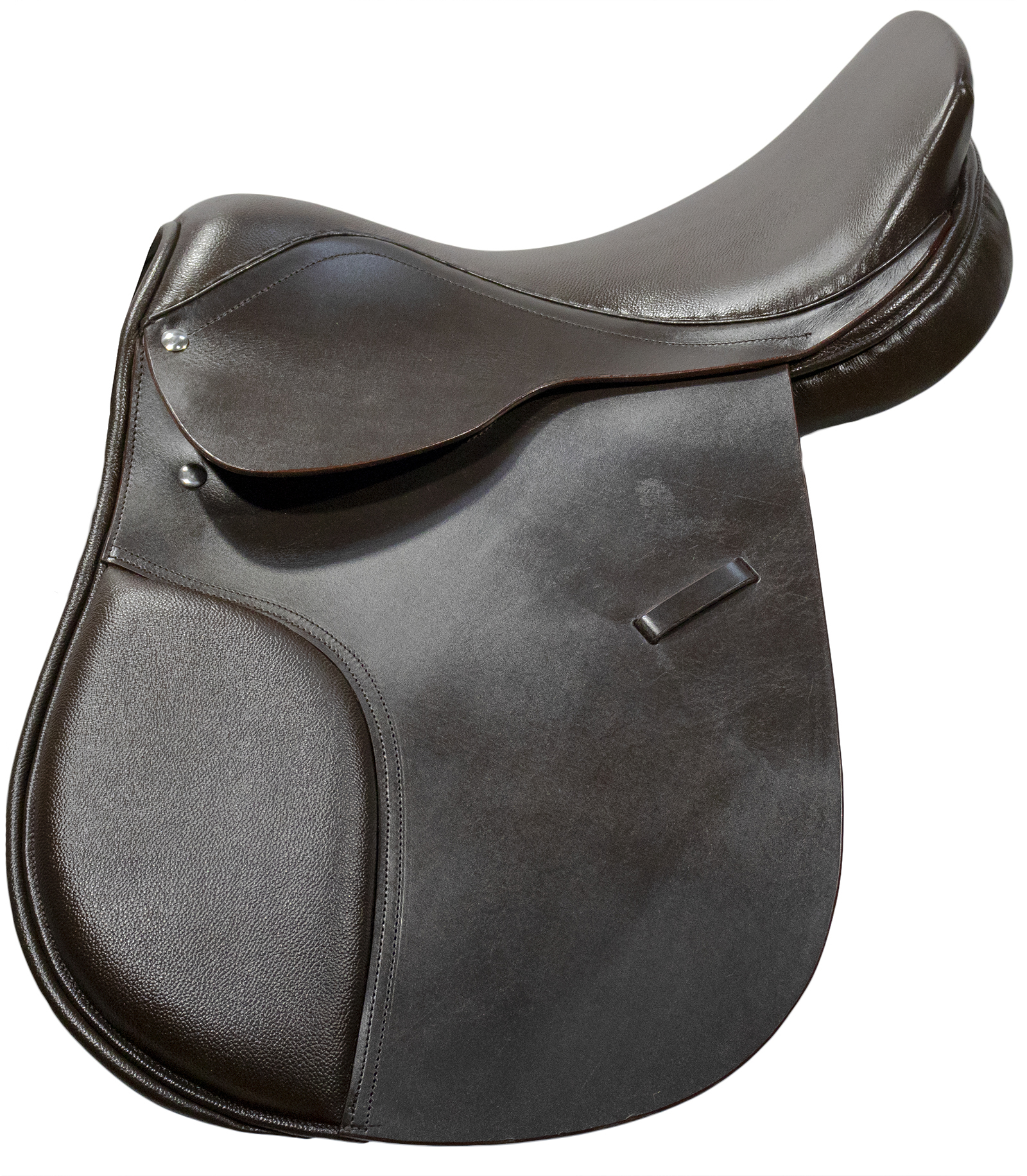 Конкурное седло из натуральной кожи. Эта новая модель специально разработана для прыжков. Имеет почти плоское сиденье и низкую заднюю луку квадратной формы. Упоры отсутствуют. Помогает достичь максимального контакта с лошадью.