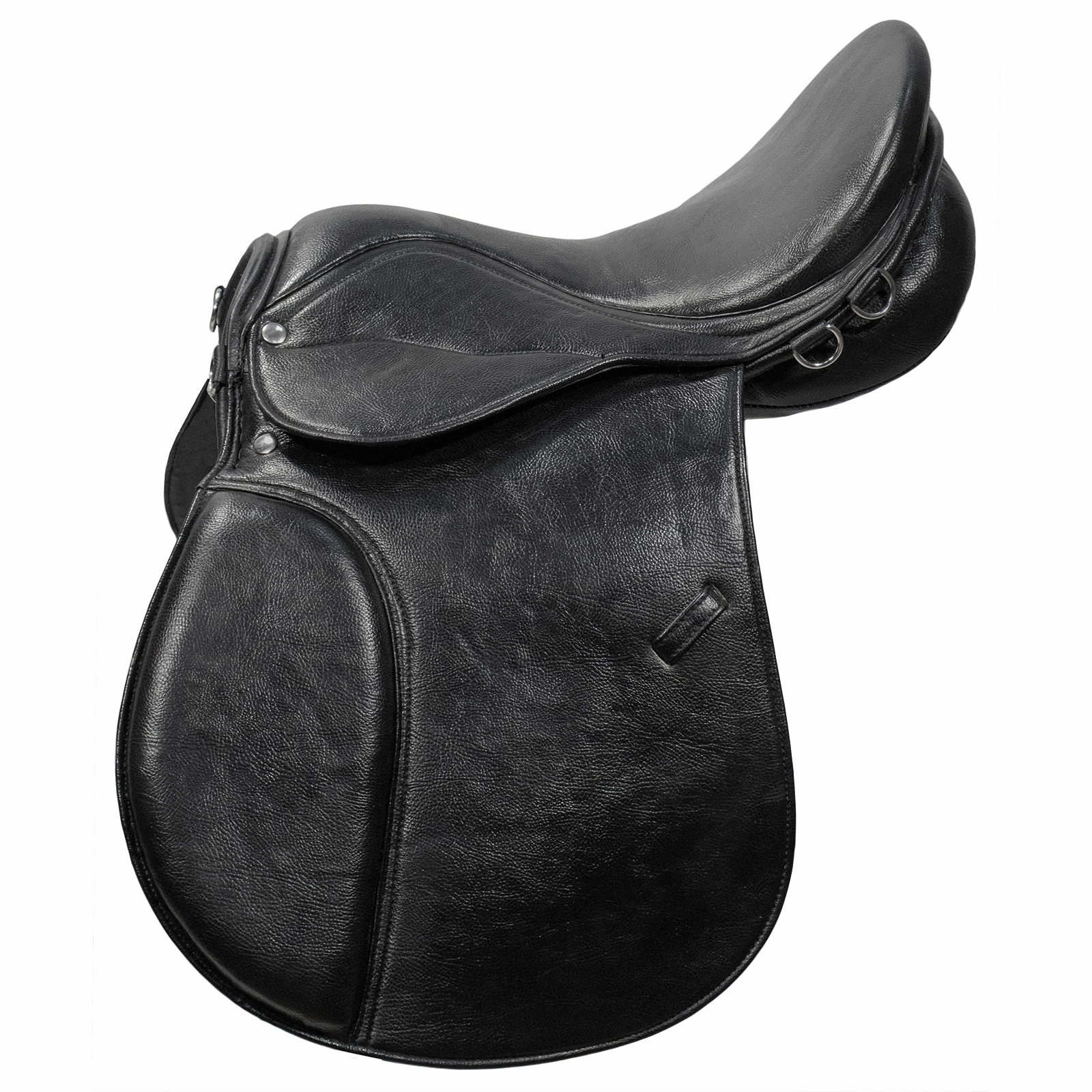 Универсальное седло (Saddle) из искусственной кожи. Гладкие коленные упоры. Деревяный ленчик, усиленный металлом. Приструги из прочной нейлоновой тесьмы. Подойдёт на узкую спину.