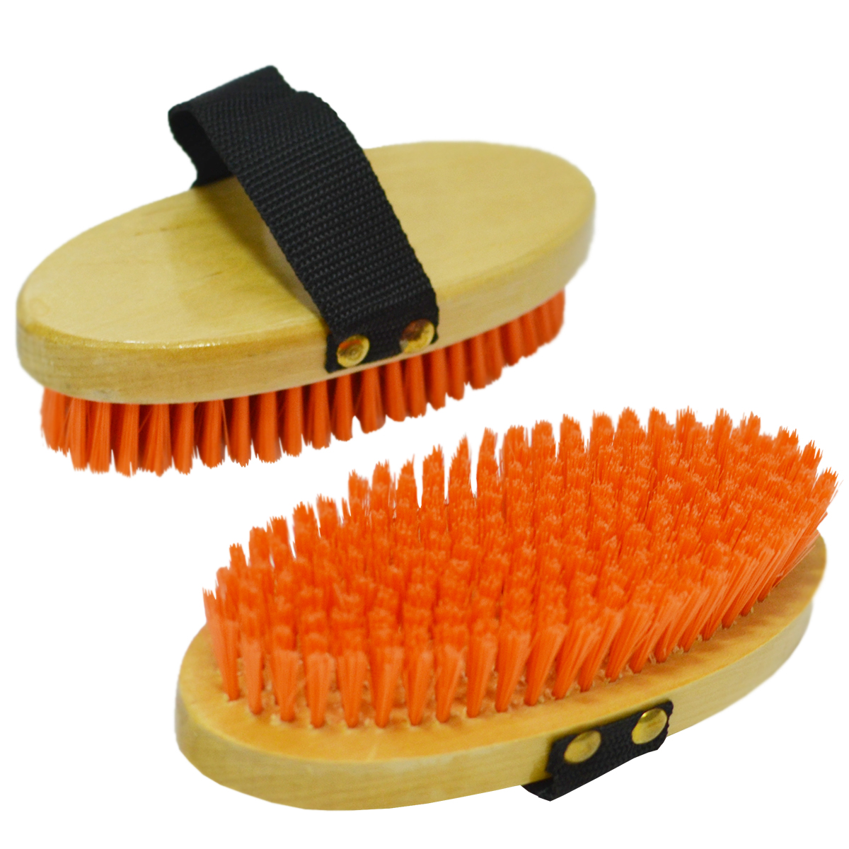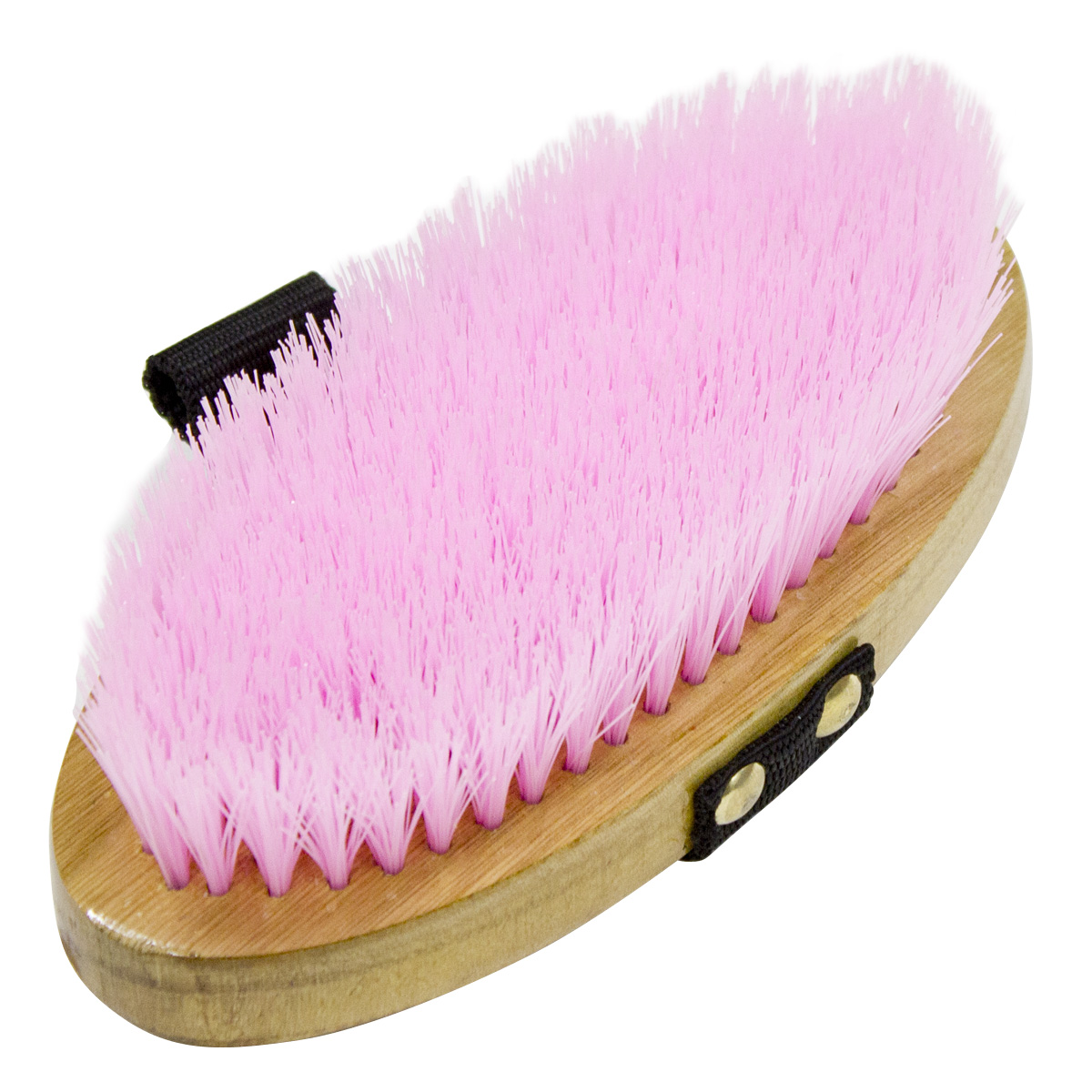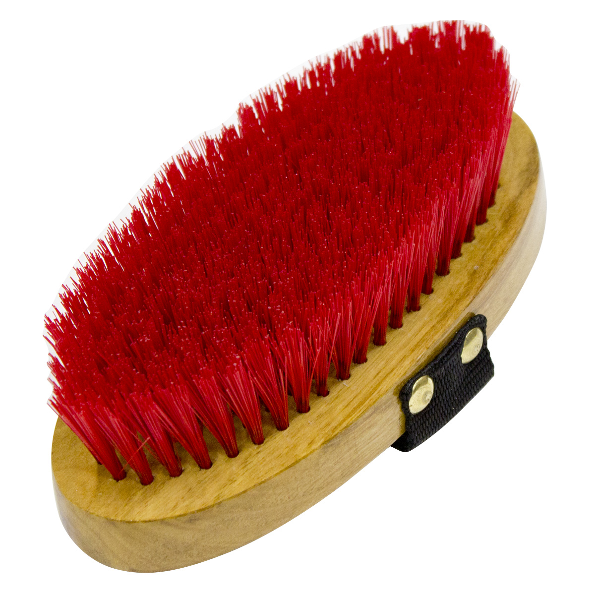 Щетка (brush) с искусственной щетиной средней жесткости на деревянной лакированной основе с ремешком для руки. Подходит для очистки тела после удаления основной грязи. Щетки средней жесткости отлично подходят для ежедневного применения. Чистка лошади играет большую роль в поддержании кожи и шерсти в здоровом состоянии.