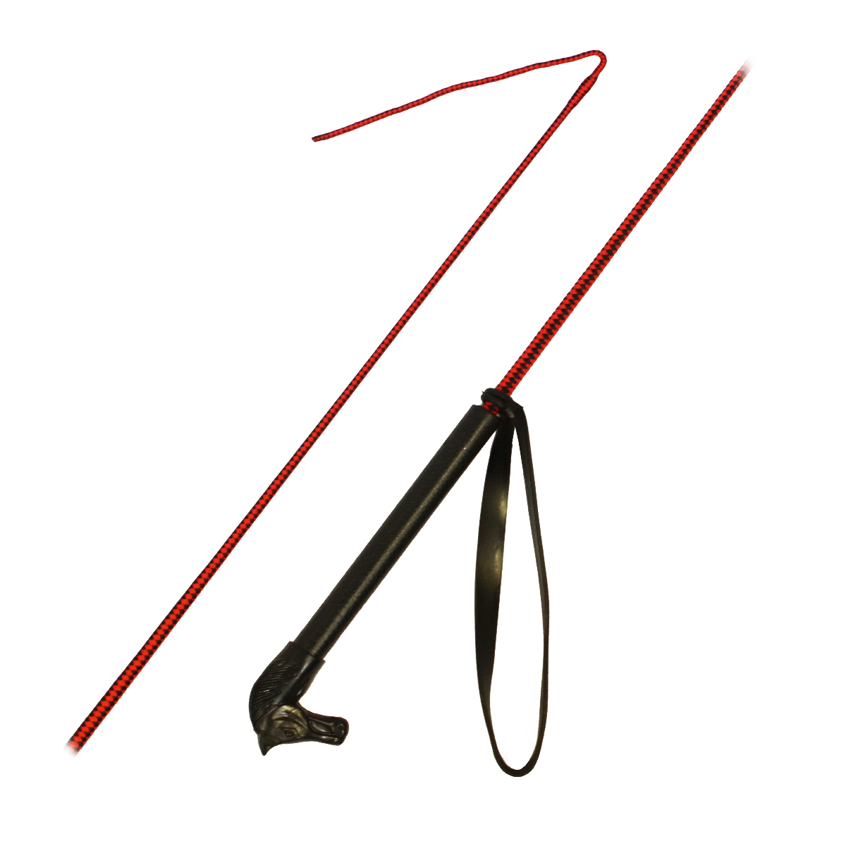 Конкурный хлыст (Jumping Bat) с веревочкой на конце. Ручка в форме головы лошади, ремешок для руки. Длина 60 см.