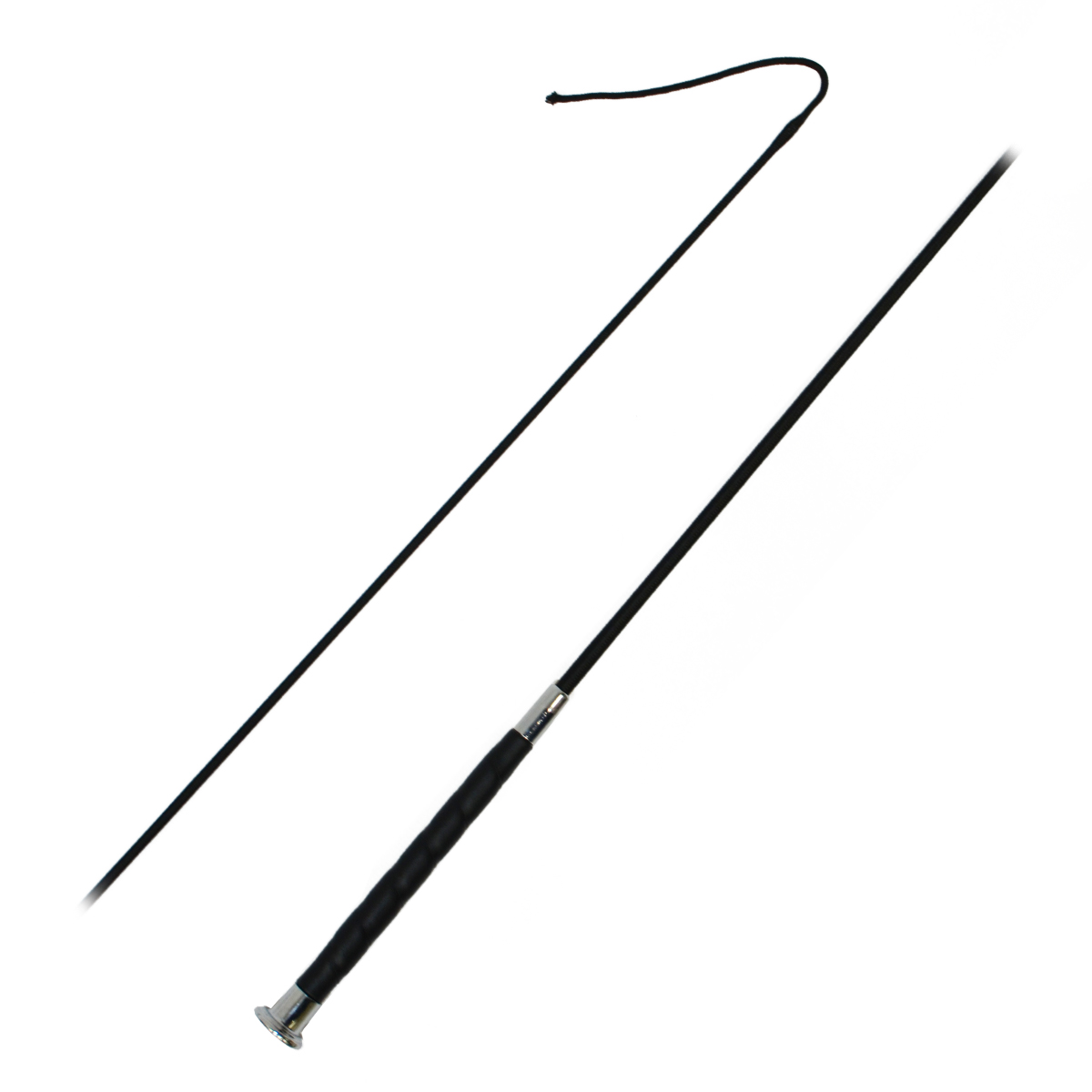 Выездковый хлыст (dressage whip) черного цвета с ручкой отделанной кожей и металлическим наконечником.