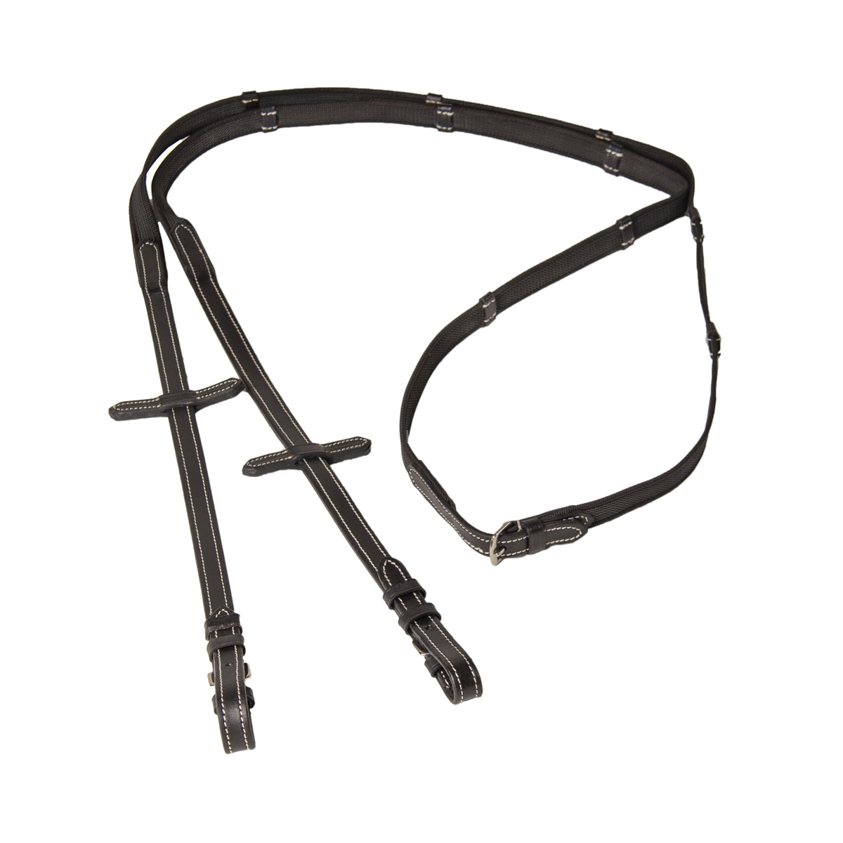 Прорезиненный повод (rubberized horse reins) с ограничителями и нашивками против скольжения из натуральной кожи.