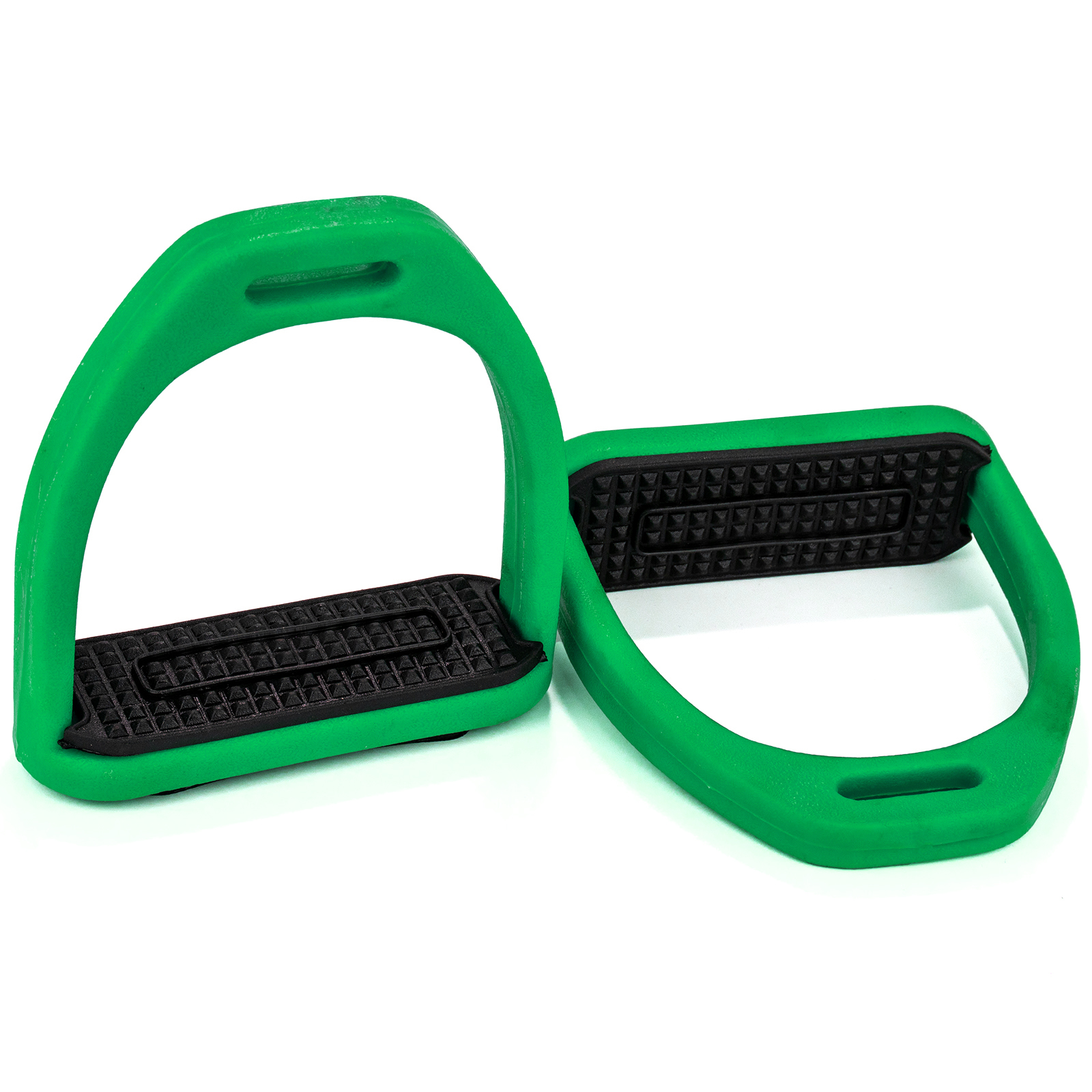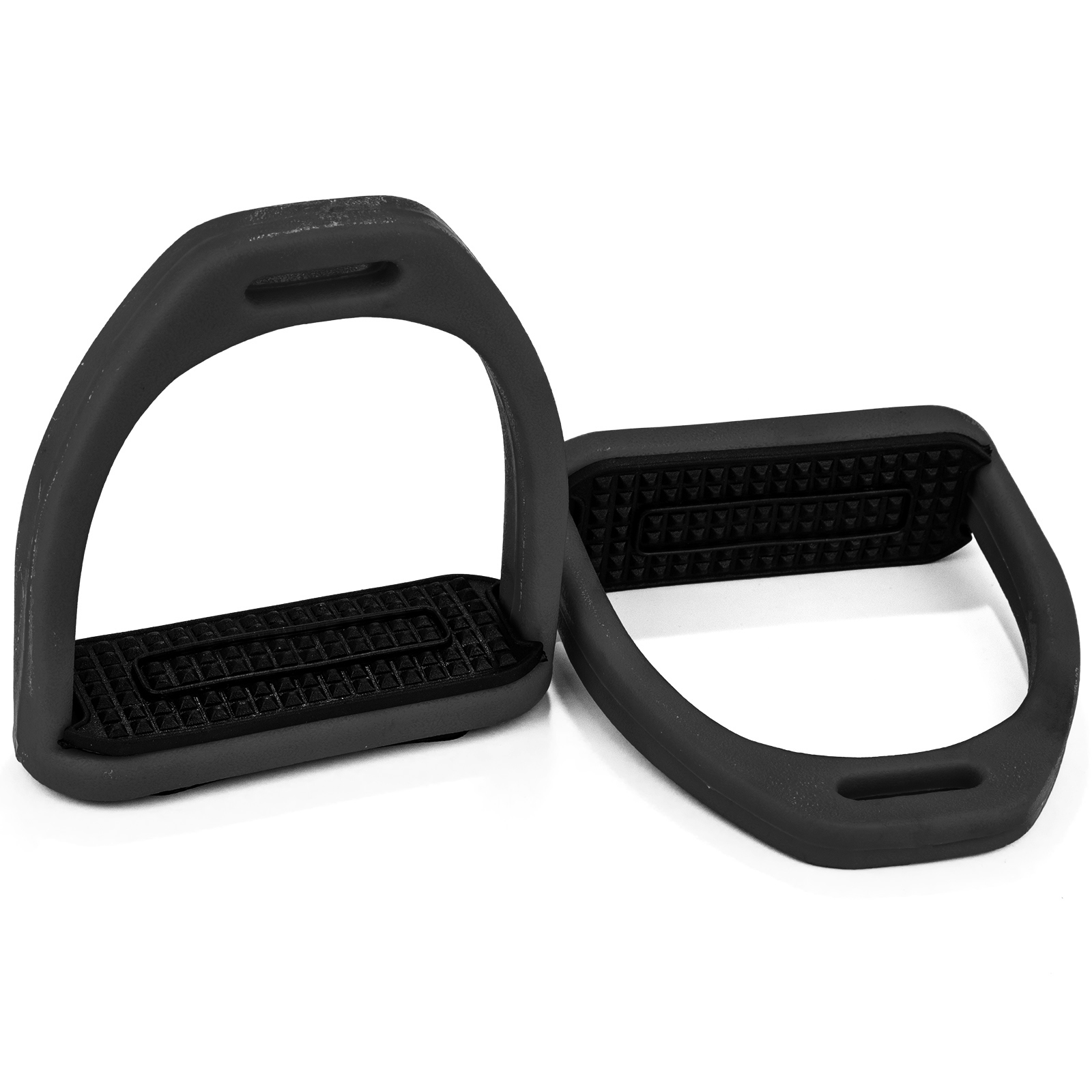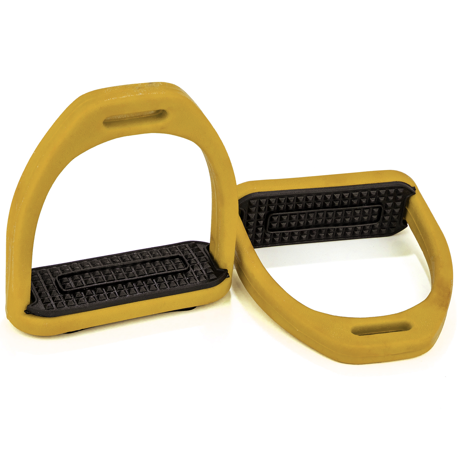 Легкие пластиковые стремена с резиновыми вставками. Стремена идеально подходят для ежедневной езды верхом. Уменьшают нагрузку на стопу, благодаря чему будут прекрасным выбором как для новичка, так и для опытного всадника. Прочные, устойчивые к химическому воздействию и погодным условиям.
