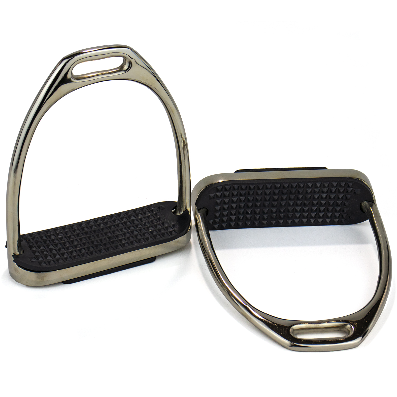 Стремена из нержавеющей стали с резиновыми вставками черного или белого цвета. Размер площадки 11,5 см.