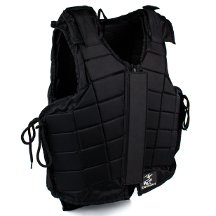 Жилет является достаточно гибким, что обеспечивает всаднику свободу движений. Шнуровка по бокам позволяет регулировать объем талии и груди.